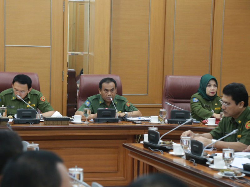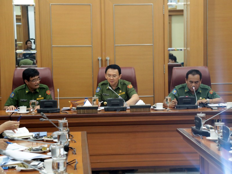 Gubernur DKI Jakarta, Basuki Tjahaja Purnama memimpin rapat rutin bersama jajaran Satuan Kerja Perangkat Daerah (SKPD) di Balai Kota DKI Jakarta, Senin (14/12/2015). Dalam rapat ini juga dibahas masalah perekonomian di Jakarta. (Foto : Reza/Beritajakarta.com)