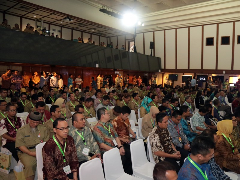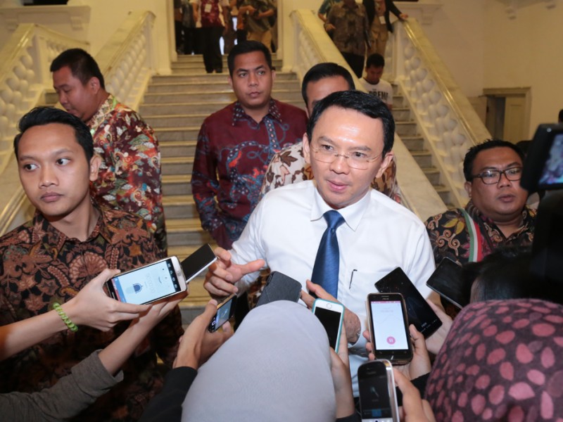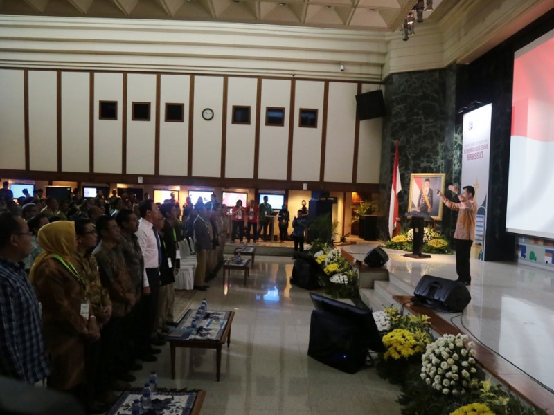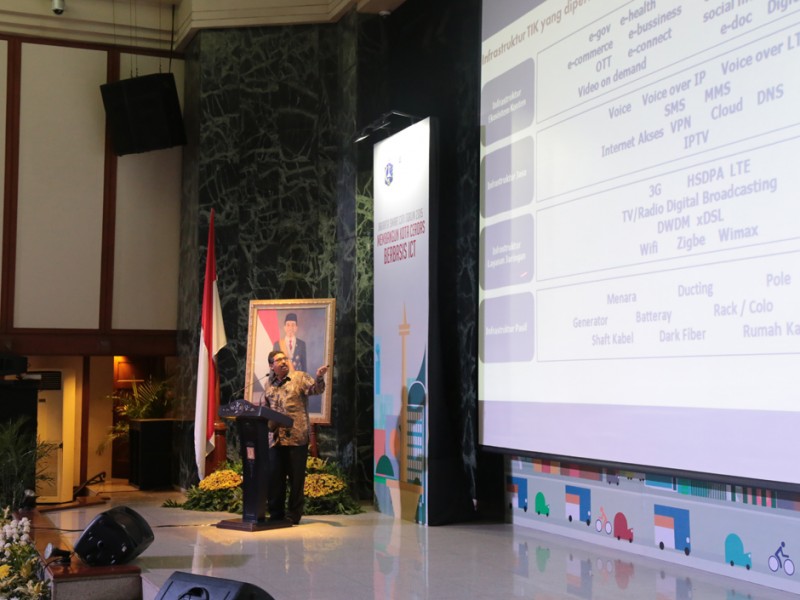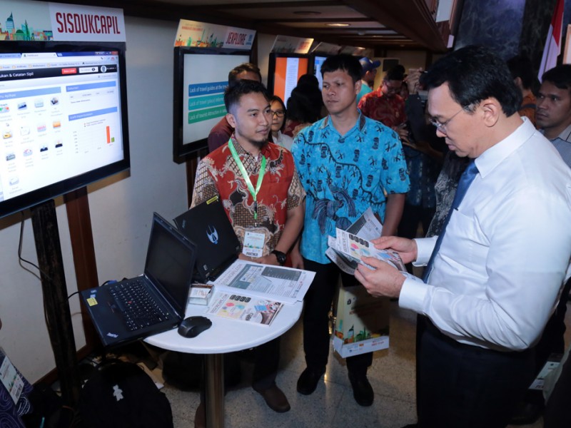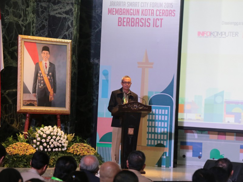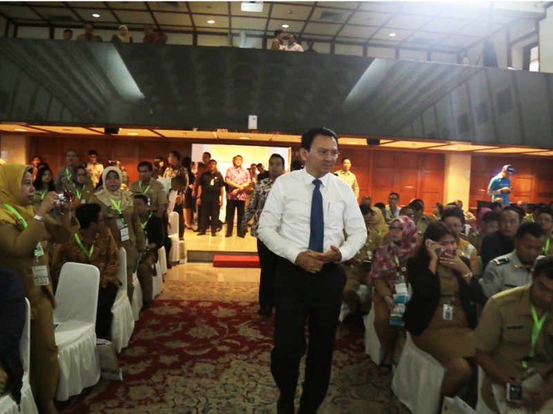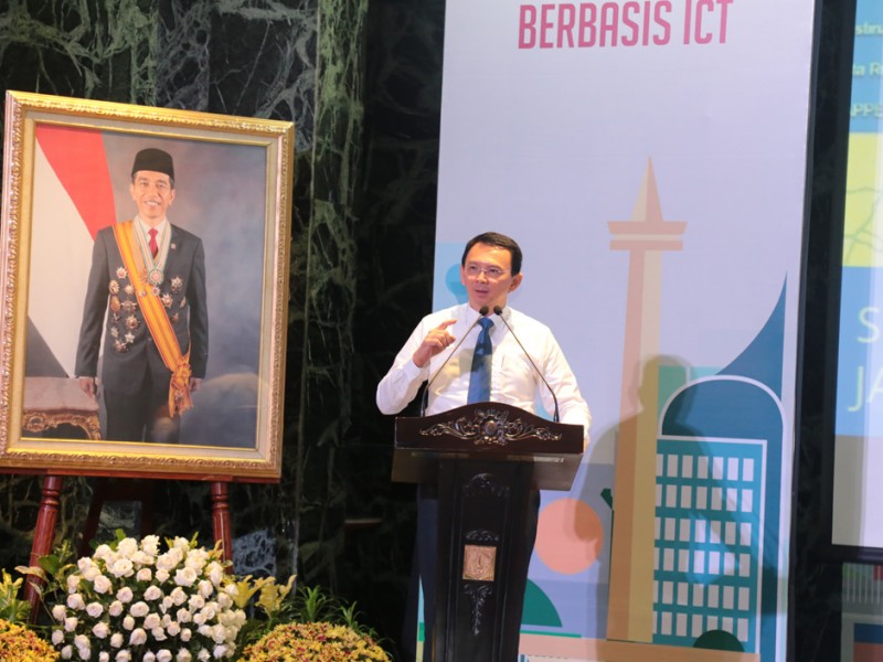 Gubernur DKI Jakarta, Basuki Tjahaja Purnama menjadi pembicara utama dalam seminar Jakarta Smart City Forum di Balai Kota DKI Jakarta, Selasa (15/12/2015). Dalam kesempatan tersebut Gubernur DKI Jakarta, Basuki Tjahaja Purnama mengaku puas dengan Jakarta Smart City yang telah ada selama satu tahun ini. (Foto : Reza/Beritajakarta.com)