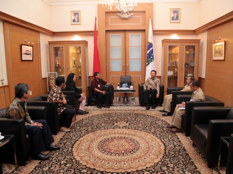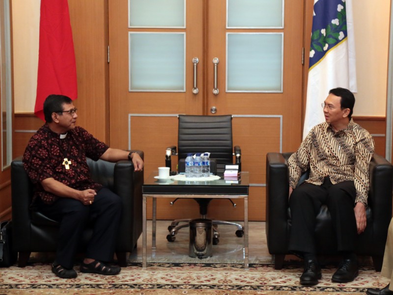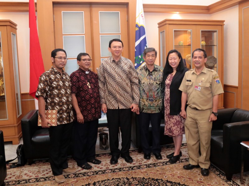 Pengurus gereja dan Dana Papa Dewan Paroki St. Yohanes Maria Vianney menemui Gubernur DKI Jakarta, Basuki Tjahaja Purnama di Balai Kota DKI Jakarta, Rabu (16/12/2015). Dalam kesempatan tersebut Basuki mendapatkan undangan untuk merayakan Natal bersama jemaat Gereja Paroki St. Yohanes Maria Vianney di Jalan Bambu Wulung, Kelurahan Bambu Apus, Kecamatan Cilangkap, Jakarta Timur. (Foto : Reza/Beritajakarta.com)