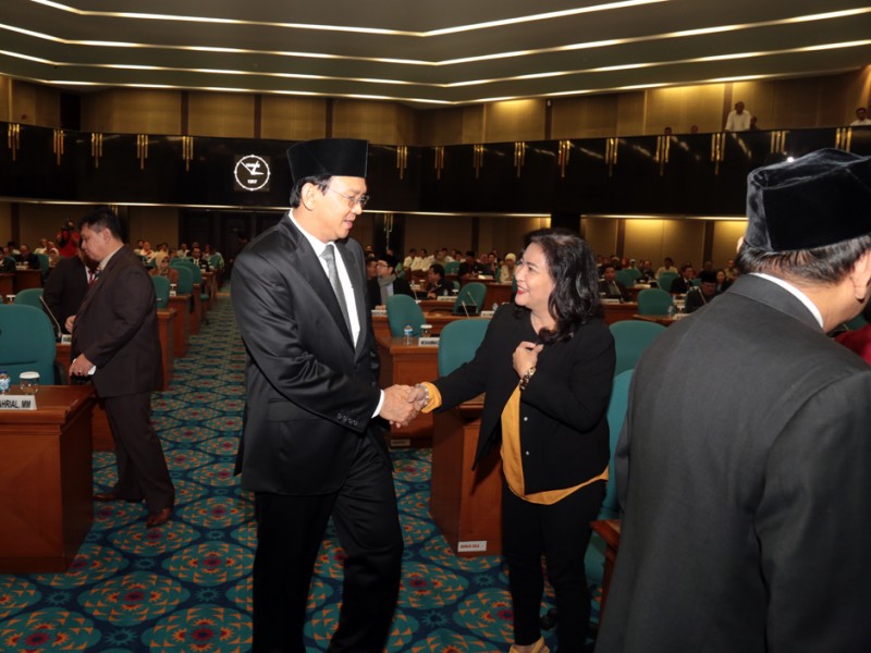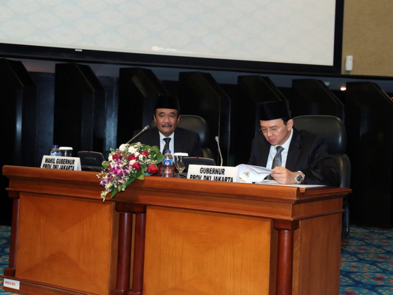 Gubernur DKI Jakarta, Basuki Tjahaja Purnama bersama Wakil Gubernur DKI Jakarta, Djarot Saiful Hidayat menghadiri Rapat Paripurna DPRD Provinsi DKI Jakarta di Gedung DPRD DKI Jakarta, Jalan Kebon Sirih, Gambir, Jakarta Pusat, Kamis (17/12/2015). Rapat Paripurna beragendakan penyampaian pidato Gubernur terkait Pengantar Nota Keuangan dan RAPBD Tahun Anggaran (TA) 2016. (Foto : Reza/Beritajakarta.com)