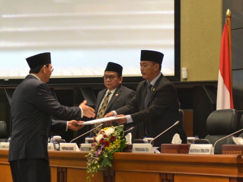 Gubernur DKI Jakarta, Basuki Tjahaja Purnama kembali menghadiri Rapat Paripurna,di Gedung DPRD DKI Jakarta, Jalan Kebon Sirih, Gambir, Jakarta Pusat,Sabtu (19/12/2015). Rapat Paripurna beragendakan penyampaian jawaban Gubernur atas pemandangan umum fraksif-raksi terhadap nota keuangan dan RAPBD TA. 2016.(Foto: Yopie / Beritajakarta.com)