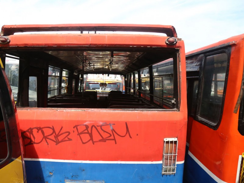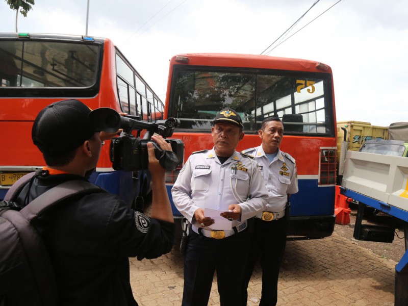Pihak Dinas Perhubungan dan Transportasi DKI Jakarta menindak tegas angkutan umum yang tidak laik jalan maupun tidak lengkap administrasi. Upaya ini dilakukan untuk mengoptimalkan keamanan dan kenyamanan pengguna jasa angkutan umum. Bus-bus yang ditertibkan dikandangkan di Poll Rawa Buaya, Jakarta Barat.(Foto: Reza / Beritajakarta.com)