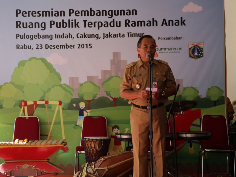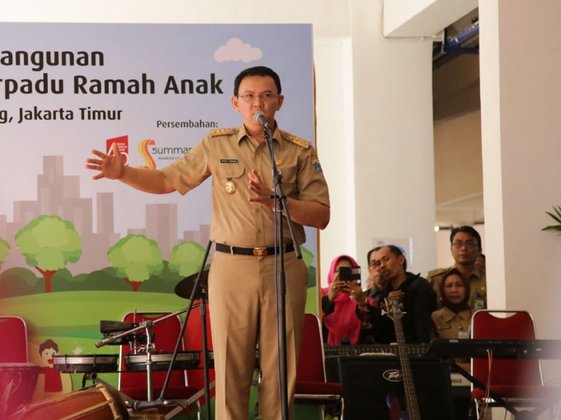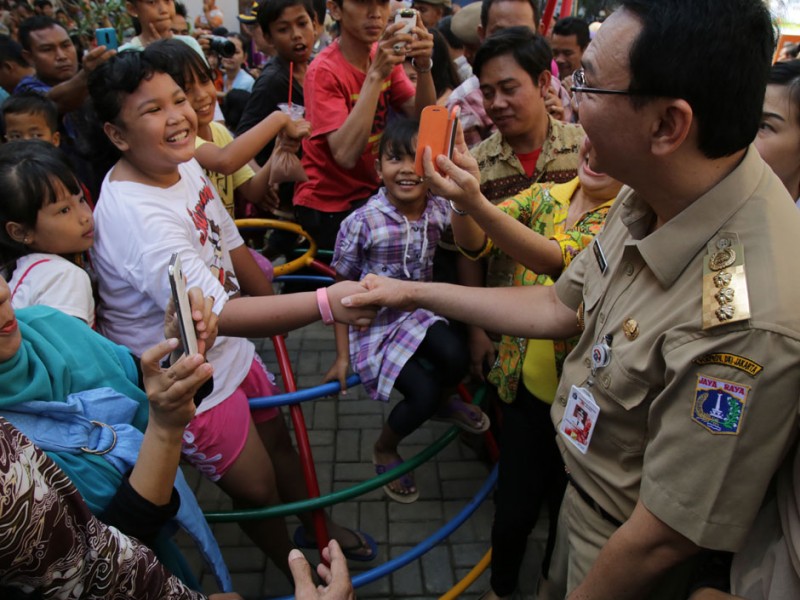 Gubernur DKI Jakarta, Basuki Tjahaja Purnama meresmikan Ruang Publik Terpadu Ramah Anak (RPTRA) Rusun Pulogebang, di Kelurahan Pulogebang, Kecamatan Cakung, Jakarta Timur, Rabu (23/12/2015). Pembangunan RPTRA terealisasi berkat bantuan pihak swasta melalui program corporate social responsibility (CSR).(Foto: Yopie / Beritajakarta.com)