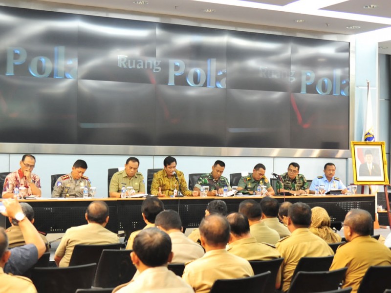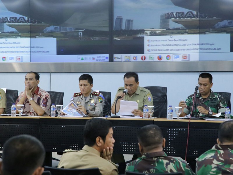 Wakil Gubernur DKI Jakarta, Djarot Saiful Hidayat bersama jajaran Forum Komunikasi Pimpinan Daerah (Forkominda) melakukan rapat koordinasi (Rakor) di Balai Kota DKI Jakarta, Rabu (23/12/2015). Rakor membahas kesiapan pengamanan perayaan Maulid, Natal dan Tahun Baru.(Foto: Yopie / Beritajakarta.com)
