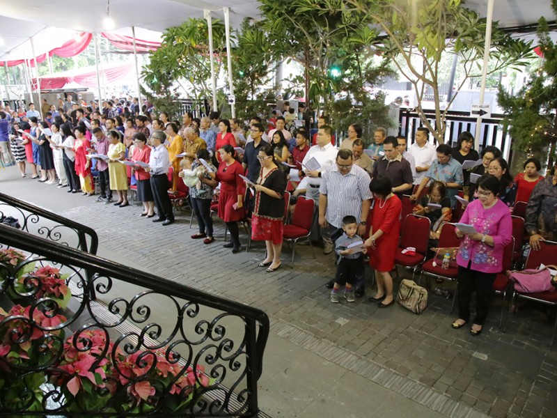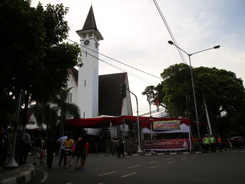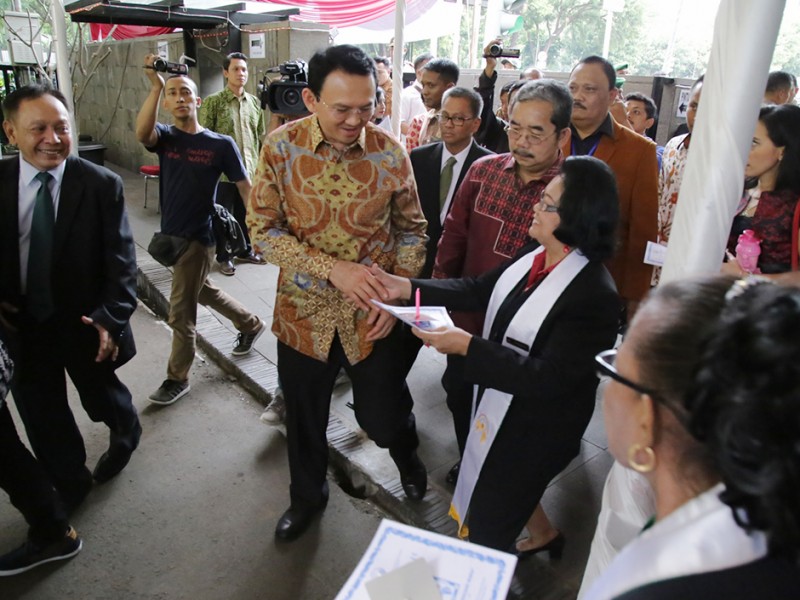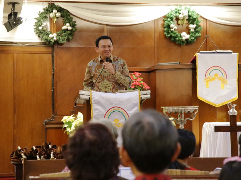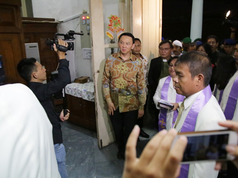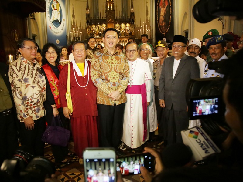 Gubernur DKI Jakarta, Basuki Tjahaja Purnama bersama jajaran Forum Koordinasi Pimpinan Daerah (Forkominda) dan Forum Kerukunan Umat Beragama (FKUB) meninjau sejumlah gereja di Ibu Kota, Kamis (24/12/2015). Gereja yang dikunjungi diantaranya Gereja Yohanes Maria Vianne ,Cipayung, Jakarta Timur, GPIB Paulus serta Gereja Katedral dan GPIB Manuel di Jakarta Pusat. (Foto : Yopie/Beritajakarta.com)