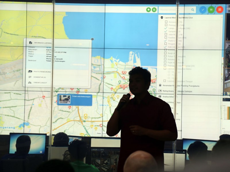Asisten Bidang Pemerintahan Sekretaris Daerah Provinsi DKI Jakarta, Bambang Sugiyono, melakukan soft launching Smart City Lounge di Balai Kota DKI Jakarta, Jalan Merdeka Selatan, Gambir, Jakarta Pusat, Senin (28/12/2015). Terdapat 6 fungsi di Smart City Lounge diantaranya untuk pembelajaran, keterbukaan, kebersamaan, pengembangan jejaring, petunjuk dan pelayanan yang baik.(Foto: Reza / Beritajakarta.com)
