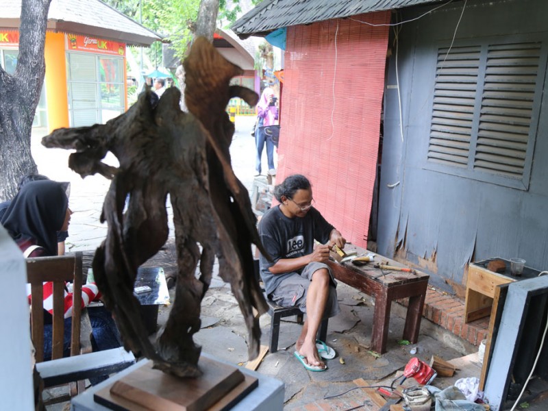 Pasar Seni Ancol, di kawasan Ancol Taman Impian, Jakarta Utara, merupakan pusat kesenian dan kerajinan yang memberikan inspirasi serta wawasan bagi penikmat dan kolektor seni. Gagasan mendirikan Pasar Seni lahir dari kebutuhan untuk mendorong semangat berkarya dan berkreasi bagi para seniman serta memduhakan masyarakat pecinta seni untuk membeli ragam koleksi yang diinginkannya.(Foto: Reza / Beritajakarta.com)
