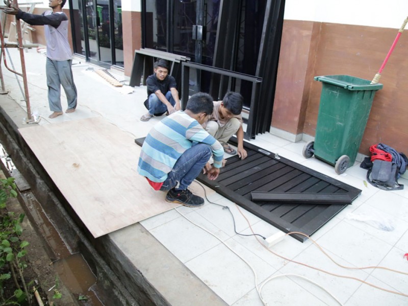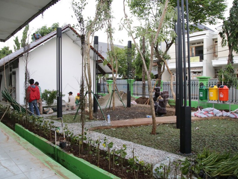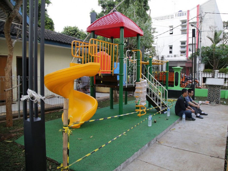 Pembangunan Ruang Publik Terpadu Ramah Anak (RPTRA) Permai di Jalan Bintaro Permai, Pesanggrahan, Jakarta Selatan, Senin (28/12/2015), sudah rampung 95 persen. RPTRA Permai yang berada tepat di belakang Gedung Gelanggang Remaja Bintaro Permai ini ditargetkan rampung pada akhir Desember 2015 dan rencananya akan diresmikan 30 Desember oleh Gubernur DKI, Basuki Tjahaja Purnama langsung.(Foto: Yopie / Beritajakarta.com)