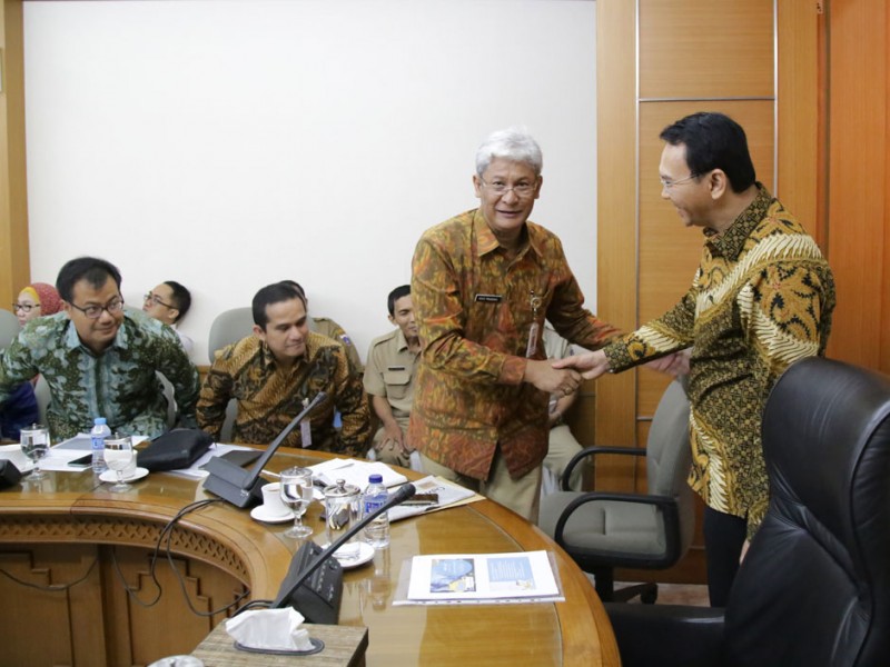 Gubernur DKI Jakarta, Basuki Tjahaja Purnama menerima Kepala LKPP, Agus Prabowo dan Tim Technical Assistance dari Asian Development Bank (ADB) di Balai Kota DKI Jakarta, Selasa (29/12/2015). Dalam pertemuan tersebut Basuki menerima penyampaian terkait hasil bantuan teknis TA-6445 pada Dinas Bina Marga Provinsi DKI Jakarta serta praktek langsung cara penggunaan sistem e-procurement ComCat (competitive catalog).(Foto: Yopie / Beritajakarta.com)