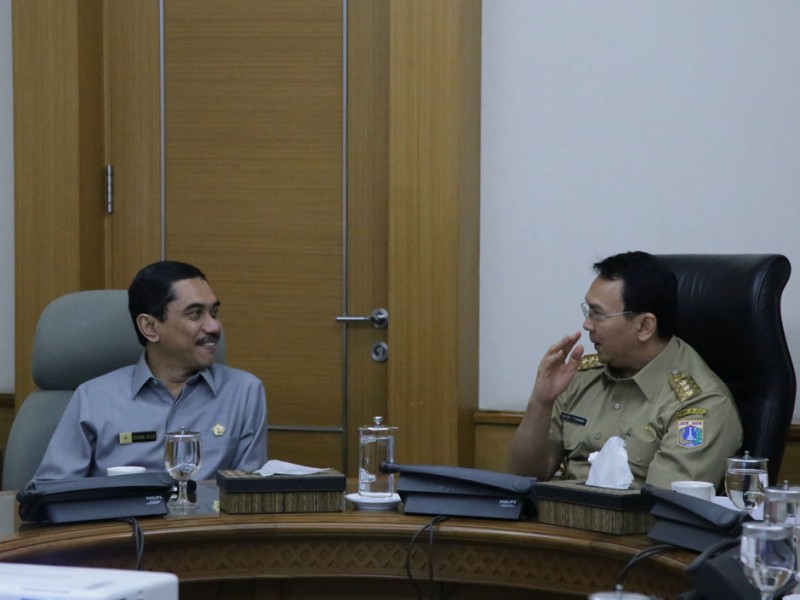 Mayjen TNI Sunindyo bersama jajaran Lemhanas Republik Indonesia menemui Gubernur DKI Jakarta, Basuki Tjahaja Purnama di Balai Kota DKI Jakarta, Rabu (29/12/2015). Dalam pertemuan tersebut dilakukan pembahasan terkait revitalisasi Taman Mini Indonesia Indah (TMII).(Foto: Yopie / Beritajakarta.com)