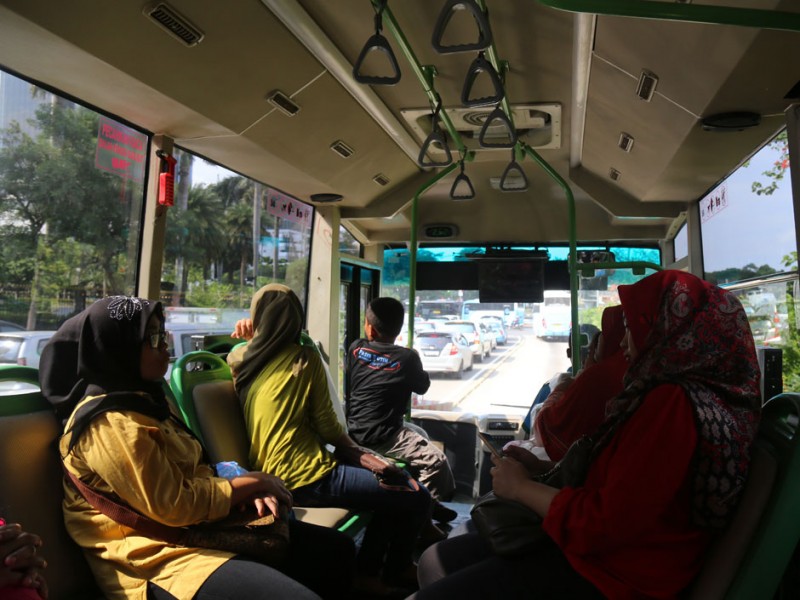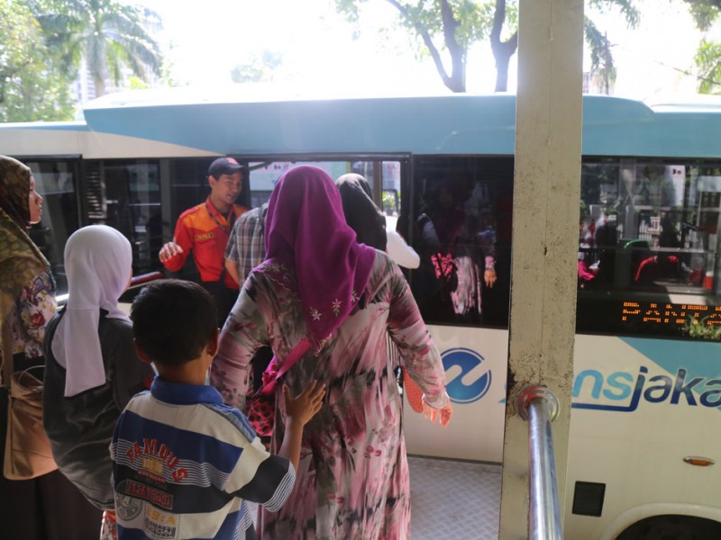 Sejak diluncurkan 22 Desember lalu, bus pengumpan feeder yang merupakan hasi integrasi PT Kopaja ke PT Transjakarta cukup dimintai masyarakat. Salah satunya nampak terjadi pada bus yang melayani rute Ragunan-Monas.(Foto: Reza / Beritajakarta.com)