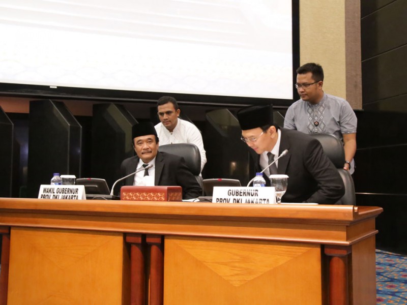 Gubernur DKI Jakarta, Basuki Tjahaja Purnama dan Wakil Gubernur DKI Jakarta, Djarot Saiful Hidayat menghadiri Rapat Paripurna di Gedung DPRD DKI Jakarta, Jalan Kebon Sirih, Jakarta Pusat, Kamis (31/12/2015). Rapat Paripurna bergendakan penyampaian laporan panitia penyusun inventarisasi terhadap hasil laporan masa reses ketiga pimpinan dan anggota DPRD Provinsi DKI Jakarta Tahun Anggaran 2015.(Foto: Yopie / Beritajakarta.com)