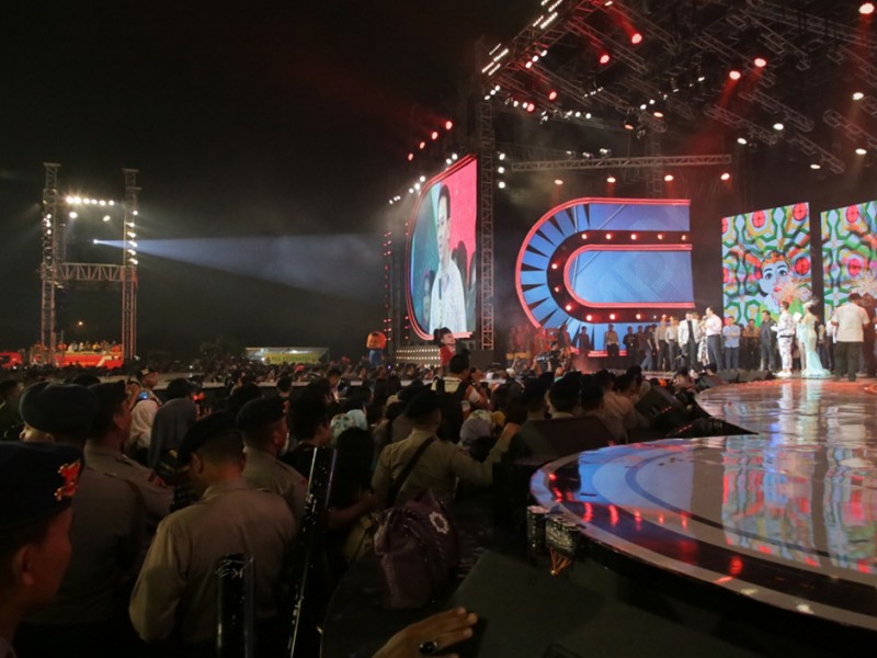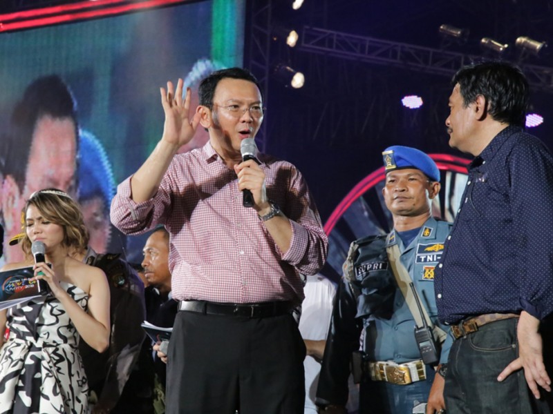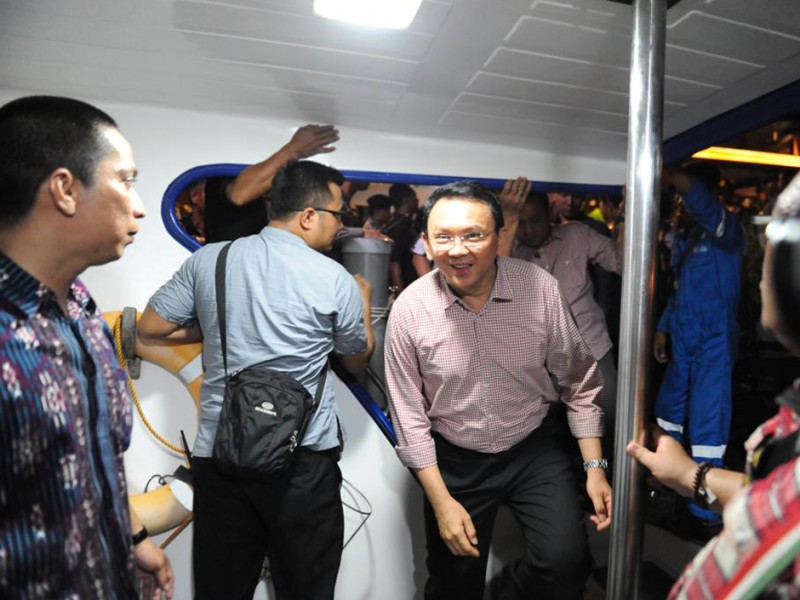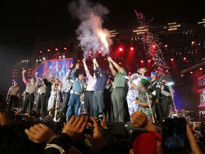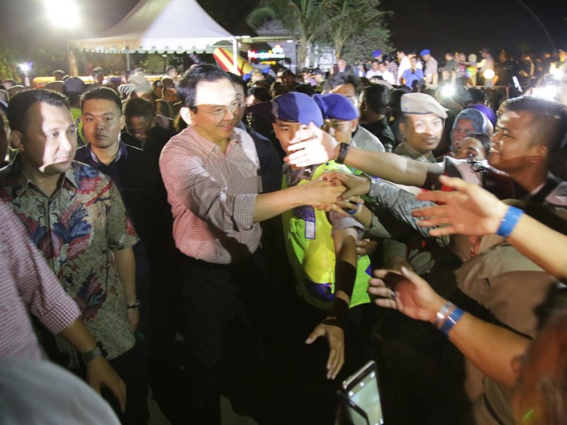 Gubernur DKI Jakarta, Basuki Tjahaja Purnama bersama Wakil Gubernur DKI Jakarta, Djarot Saiful Hidayat merayakan Tahun Baru 2016 bersama warga di Pantai Carnaval, Ancol, Jakarta Utara. Basuki bersama jajaran Forum Komunikasi Pimpinan Daerah (Forkominda) dan sejumlah pimpinan Satuan Kerja Perangkat Daerah (SKPD) menuju Ancol dari Pantai Mutiara dengan menempuh jalur laut.(Foto: Yopie / Beritajakarta.com)