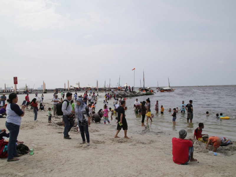 Sejumlah tempat wisata di DKI Jakarta, Sabtu (2/1/2016), masih dipadati pengunjung. Tak terkecuali di Ancol Taman Impian, Jakarta Utara. Masyarakat yang datang bertamasya nampak menyemut, terutama di area pantai. (Foto: Yopie/beritajakarta.com)