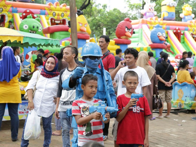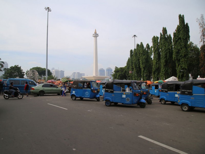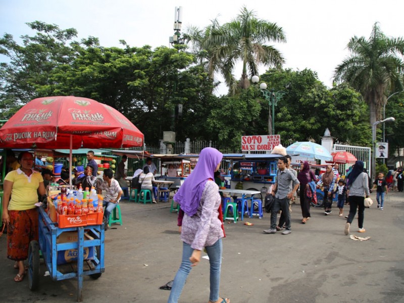Kawasan wisata edukasi sejarah Monumen Nasional (Monas), di kawasan Gambir, Jakarta Pusat, Sabtu (2/1/2016), ramai pengunjung. Bahkan, tidak sedikit pengunjung yang datang berasal dari luar kota. Banyaknya pengunjung yang datang memberikan berkah tersendiri bagi para pedagang di sentra kuliner dan cenderamata Lenggang Jakarta. (Foto: Yopie/beritajakarta.com)