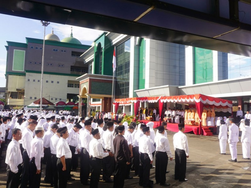 Wakil Gubernur DKI Jakarta, Djarot Saiful Hidayat menjadi Inspektur Upacara (Irup) memperingati Hari Amal Bakti ke-70 di Kantor Wilayah Kementerian Agama Provinsi DKI Jakarta, Jalan DI Panjaitan, Jakarta Timur, Minggu (3/1/2016). Dalam kesempatan tersebut Djarot meminta agar nilai religius yang dikembangkan harus berdasarkan nilai-nilai Ketuhanan yang berkebudayaan dan bisa membantu serta menghormati satu sama lainnya. (Foto: Reza/beritajakarta.com)