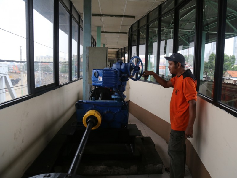 Pemerintah Provinsi DKI Jakarta berupaya optimal mengatasi terjadinya genangan maupun banjir. Selain kesiapsiagaan petugas di Pintu Air, keberadaan Rumah Pompa memiliki peran sentral untuk mencegah terjadinya banjir. Hal ini sebagaimana di Pintu Air Karet dan Rumah Pompa Petamburan, Jakarta Pusat. (Foto: Reza/beritajakarta.com)