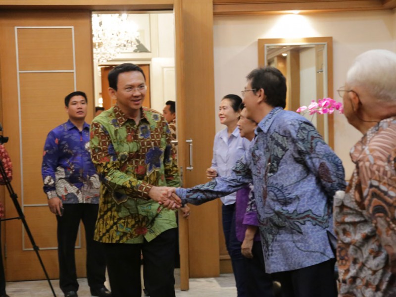 Pengurus Yayasan Wihara Dharma Bakti menemui Gubernur DKI Jakarta, Basuki Tjahaja Purnama di Balai Kota DKI Jakarta, Selasa (5/1/2015). Dalam kesempatan tersebut pengurus wihara menyampaikan perihal rencana pembangunan Wihara Dharma Bakti yang merupakan bangunan cagar budaya. Wihara Dharma Bakti mengalami kerusakan lantaran terjadi kebakaran, Maret 2015 lalu.(Foto: Yopie/beritajakarta.com)