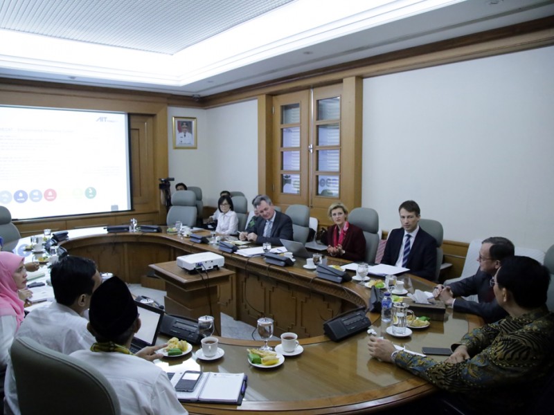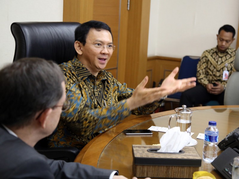 Duta Besar (Dubes) Indonesia Austria untuk Indonesia, H E Andreas Karabaczek bersama delegasi Austrian Institute Technology menemui Gubernur DKI Jakarta, Basuki Tjahaja Purnama di Balai Kota DKI Jakarta, Kamis (7/1/2015). Dalam kesempatan tersebut Basuki menerima penyampaian terkait proposal kerjasama sistem monitoring udara berbasis system online. (Foto : Yopie/Beritajakarta.com)