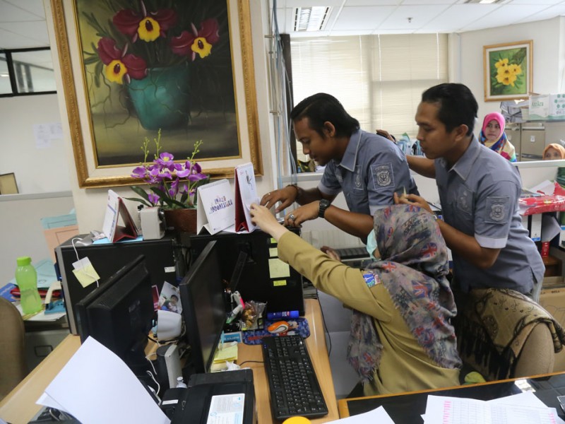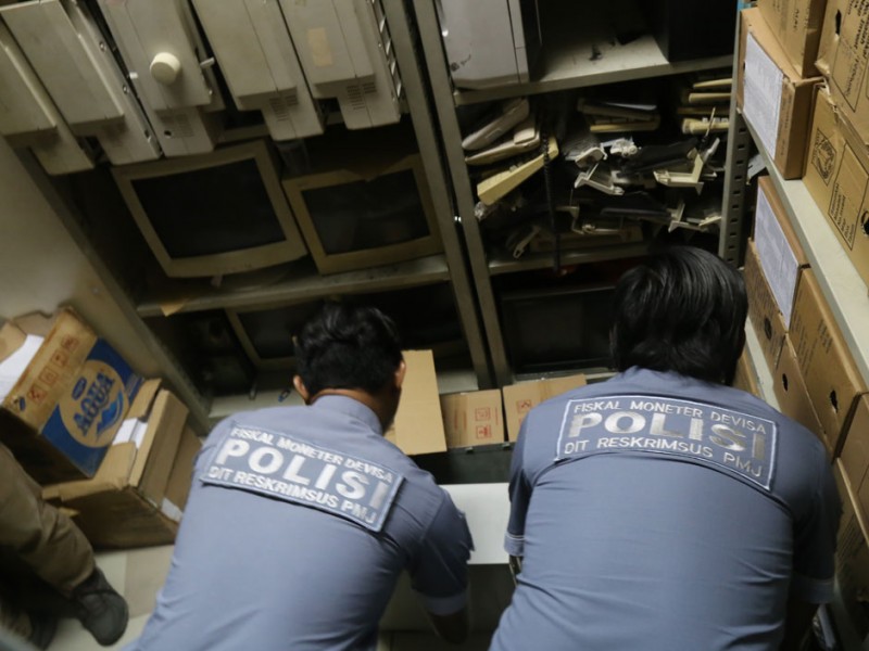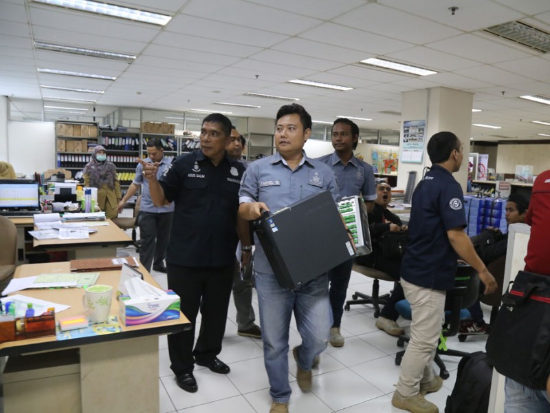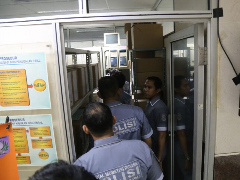 Puluhan penyidik Subdit 2 Fiskal Moneter Devisa, Direktorat Reskrimsus Polda Metro Jaya mendatangi Kantor Dinas Pelayanan Pajak (DPP) DKI Jakarta di Jalan Abdul Muis, Jakarta Pusat, Selasa (12/01/2016).(Foto: Reza / Beritajakarta.com)
