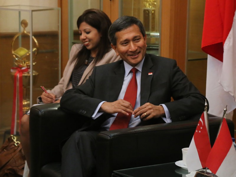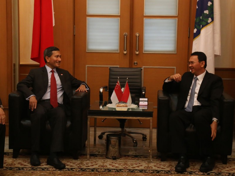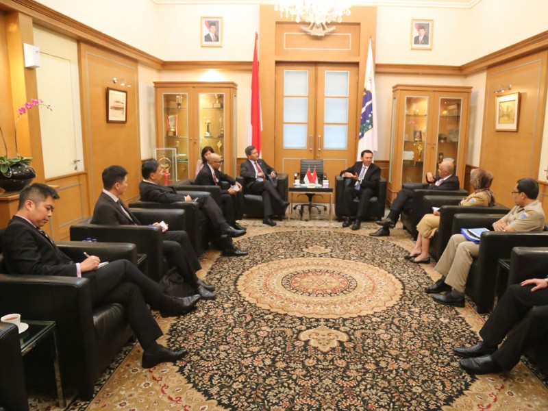 Gubernur DKI Jakarta, Basuki Tjahaja Purnama menerima Menteri Luar Negeri Singapura di Balai Kota DKI Jakarta, Selasa (12/01/2016). Dalam pertemuan ini Basuki menunjukkan Jakarta Smart City Lounge kepada Menteri Luar Negeri Singapura.(Foto: Reza / Beritajakarta.com)