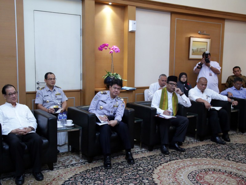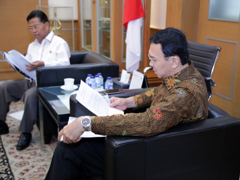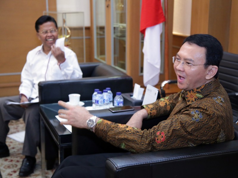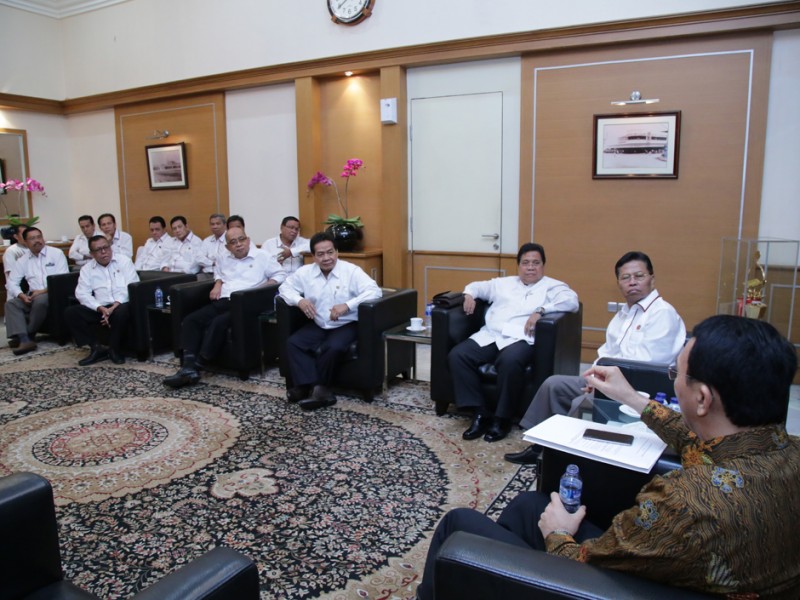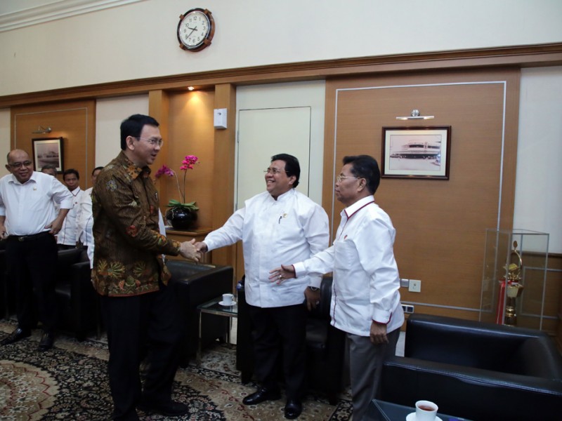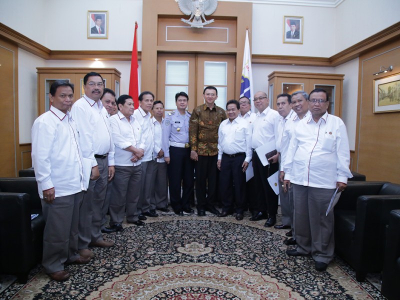 Ketua Umum Koperasi Wahana Kalpika (KWK) DKI Jakarta, La Ode Djeni Hamsar beserta jajaran menemui Gubernur DKI Jakarta, Basuki Tjahaja Purnama, di Balai Kota DKI Jakarta, Kamis (14/1/2016). Dalam kesempatan tersebut dilakukan pembahasan terkait pola angkutan umum dan sistem transportasi di DKI Jakarta serta penyampaian proposal permohonan peraturan pengurusan uji KIR. (Foto : Yopie/Beritajakarta.com)