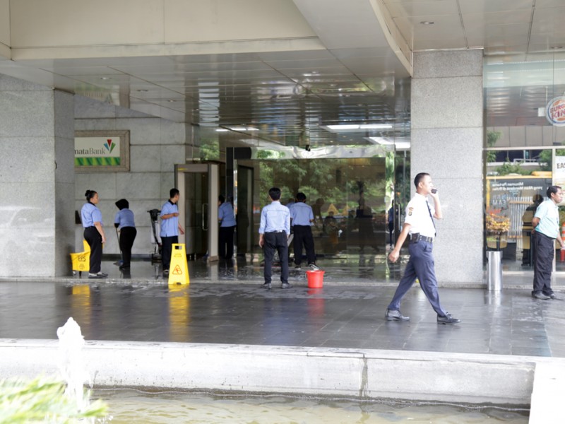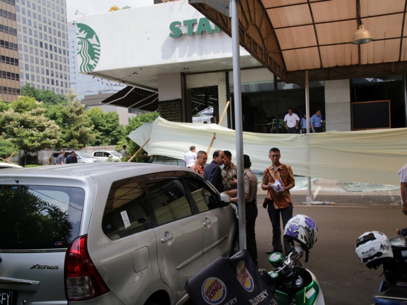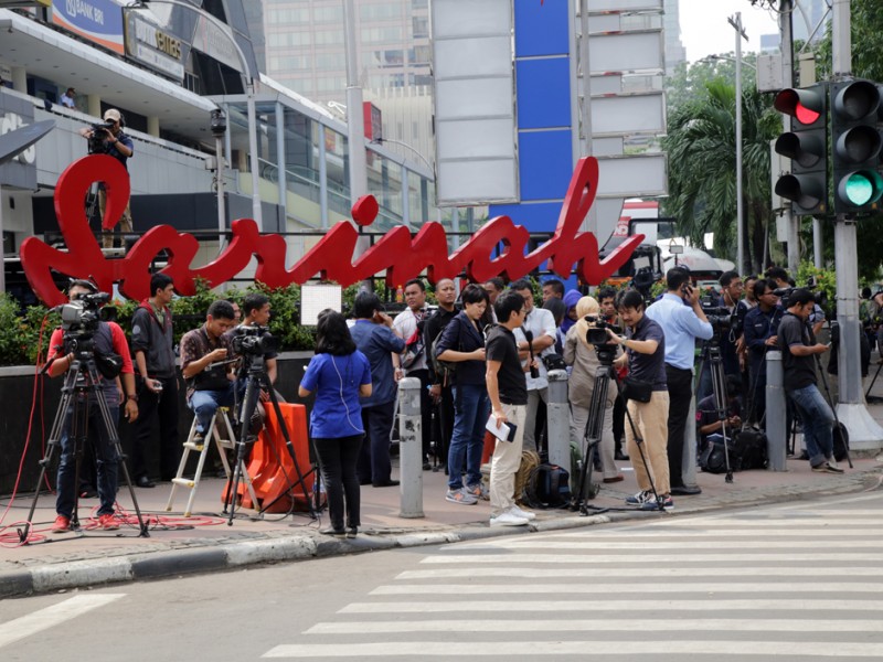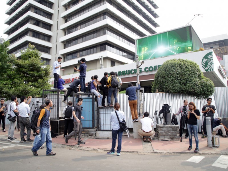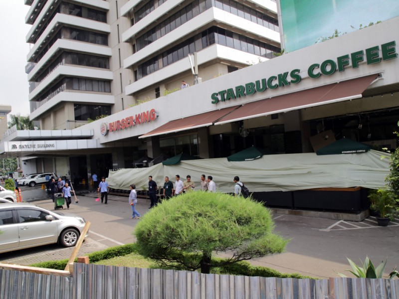Pasca terjadinya serangan teror di kawasan Sarinah, Jalan MH Thamrin, Jakarta Pusat, situasi sudah kondusif. Meski demikinan, Jumat (15/1/2016), sejumlah personil kepolisian masih melakukan olah Tempat Kejadian Perkara (TKP) untuk melengkapi proses penyelidikan. (Foto : Yopie/Beritajakarta.com)