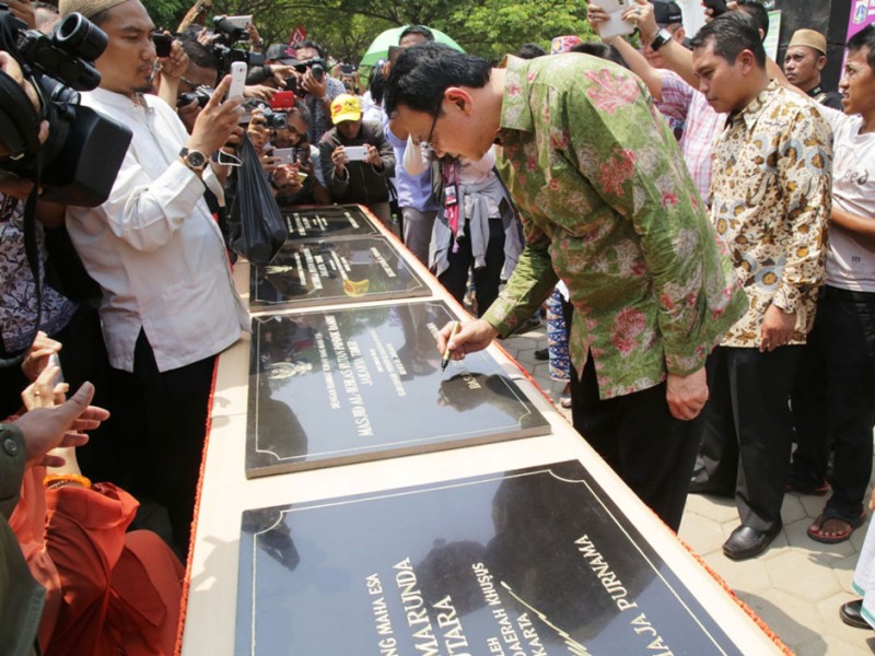 Untuk menunjang fasilitas umat muslim Rusun Marunda Gubernur DKI Jakarta, Basuki Tjahaja Purnama meresmikan Masjid dan Mushola di Rusun Marunda,Cilincing, Jakarta Utara. Minggu (17/1/2016).Masjid Rusun Marunda mulai dibangun pada tahun 2014 di atas lahan seluas 2.000 meter persegi dan bisa menampung hingga 200 jamaah. Pada kesempatan yang sama Basuki juga sekaligus meresmikan Feeder Transjakarta dengan rute Tanjung Priok - Rusun Marunda untuk memudahkan Transportasi warga Rusun Marunda, hal ini sesuai komitmen Pemprov DKI Jakarta dalam memberikan kemudahan layanan transportasi gratis bagi warganya. (Foto: Yopie / Beritajakarta.com)