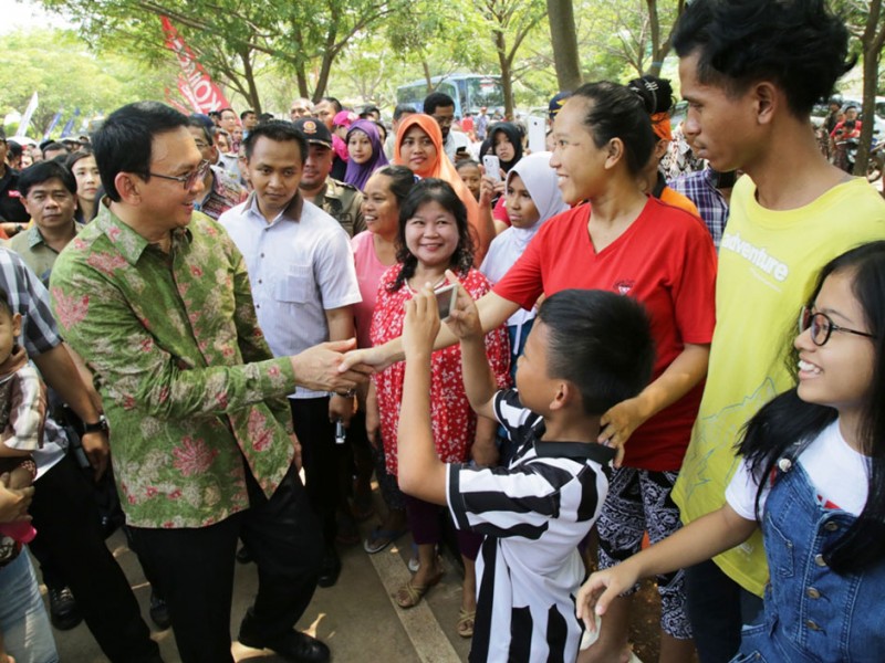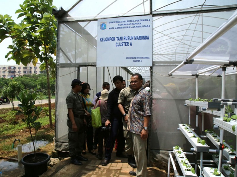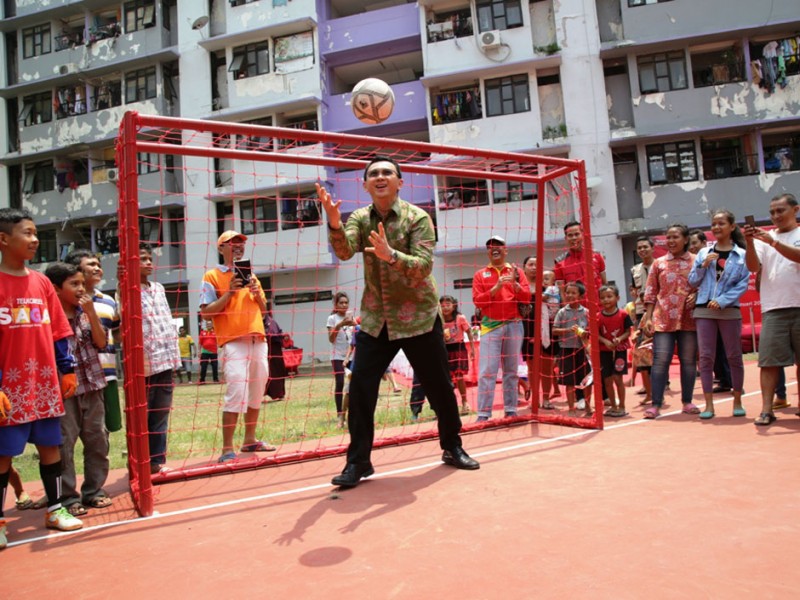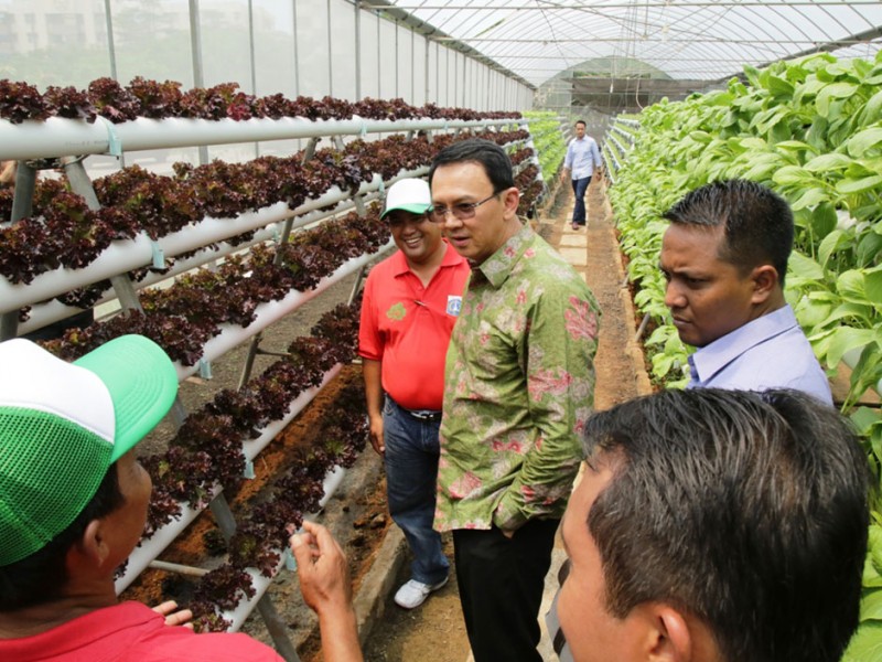 Disela-sela kegiatanya dalam meresmikan Masjid dan Feeder Bus Transjakarta di Rusun Marunda,Cilincing, Jakarta Utara, Minggu (17/1/2016). Gubernur DKI Jakarta, Basuki Tjahaja Purnama menyempatkan diri untuk berkeliling dan bersosialisasi dengan warga Rusun Marunda dengan mengunjungi Green House tempat penanaman sayuran Hidroponik dan juga ikut dalam permainan sepak bola dengan anak-anak rusun.(Forto: Yopie / Beritajakarta.com)