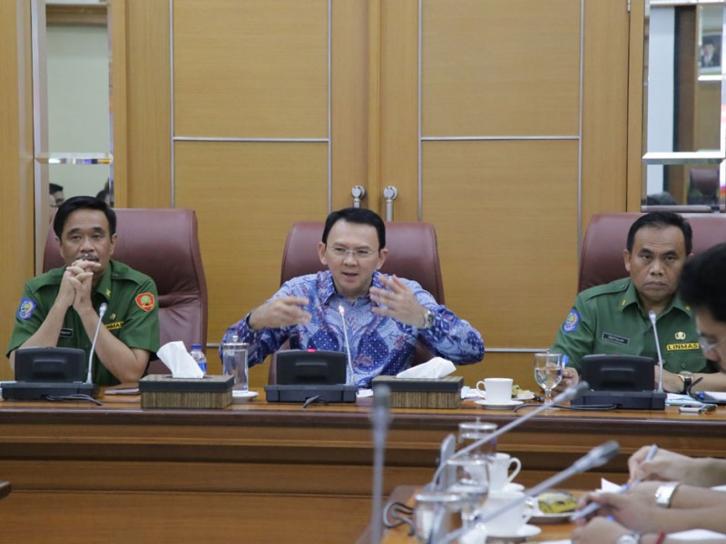Gubernur DKI Jakarta, Basuki Tjahaja Purnama memimpin rapat rutin bersama jajaran Satuan Kerja Perangkat Daerah (SKPD) di Balai Kota DKI Jakarta, Senin (18/1/2016). Fokus pembahasana Rapim kali ini diantaranya Evaluasi Penyerapan Anggaran, Kegiatan Prioritas Dinas Pendidikan Sesuai RKA 2016 dan Paparan Dinas Kesehatan DKI Jakarta perihal persiapan pelayanan sistem registrasi secara komputerisasi di setiap puskesmas di Ibukota. (Foto: Yopie/beritajakarta.com)