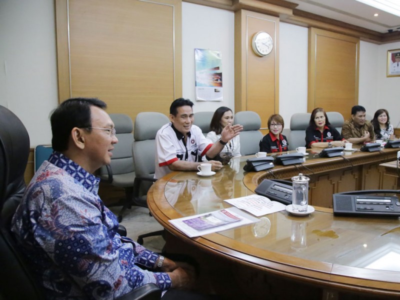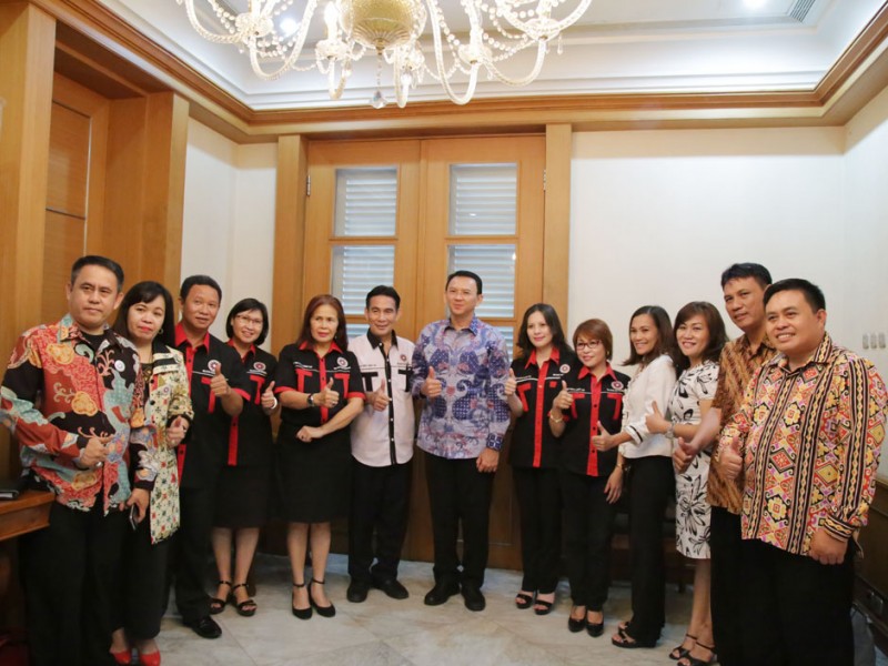 Gubernur DKI Jakarta, Basuki Tjahaja Purnama menerima kunjungan pengurus Kerukunan Keluarga Kawanua di Balai Kota DKI Jakarta, Jakarta Pusat, Senin (18/1/2016). Dalam kesempatan tersebut pengurus Kerukunan Keluarga Kawanua (KKK) menyampaikan kesiapan mereka dalam membantu pembangunan yang sedang dilakukan Pemprov DKI Jakarta. (Foto: Yopie/beritajakarta.com)