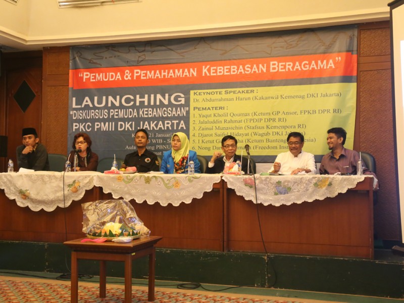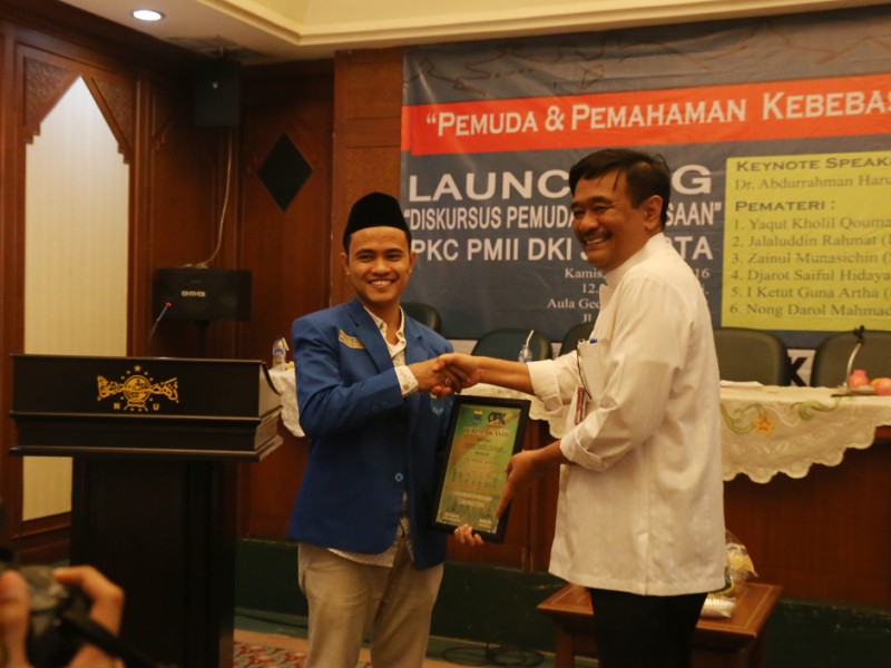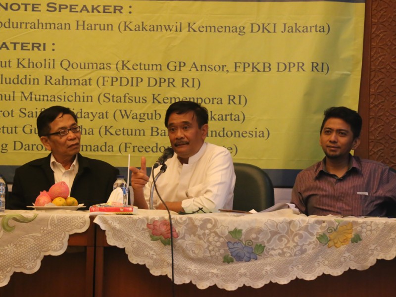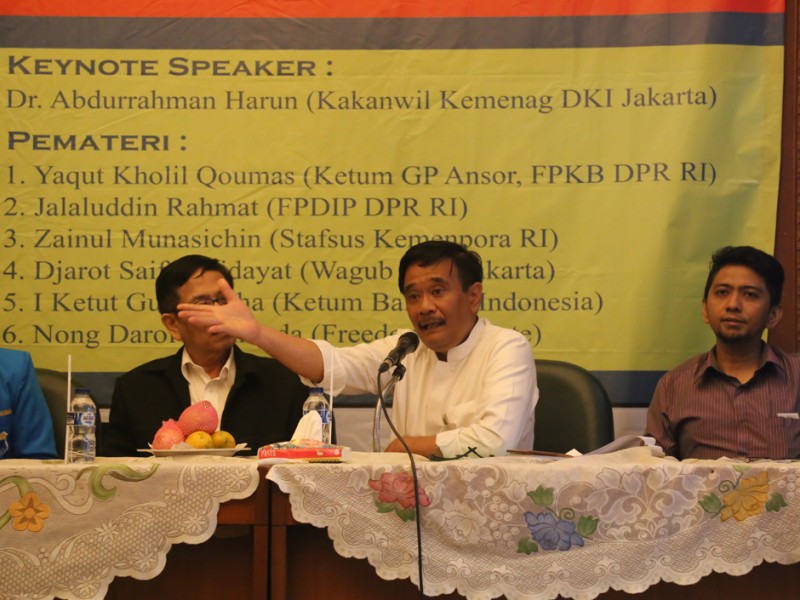 Wakil Gubernur DKI Jakarta, Djarot Saiful Hidayat mengajak mahasiswa memerangi radikalisme saat menjadi pembicara pada launching klub Diskusi Pemuda Kebangsaan (DPK) dan Seminar Kebangsaan di Aula PBNU, Jakarta Pusat, Kamis (21/01/2016). (Foto: Reza/beritajakarta.com)