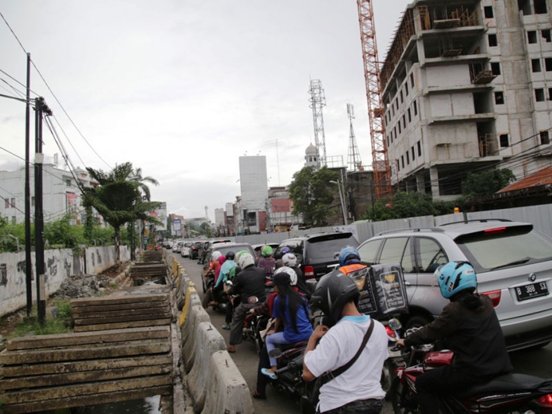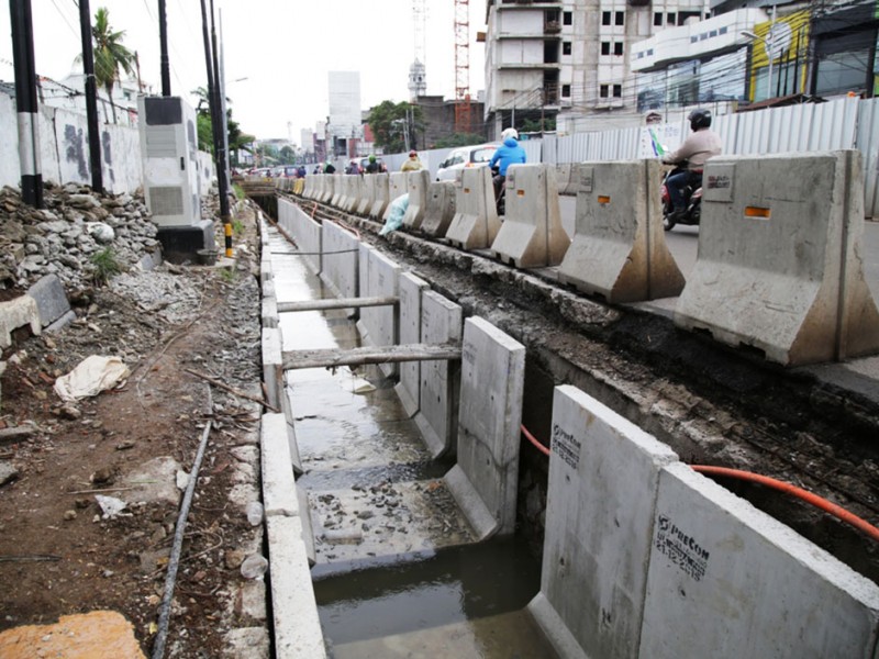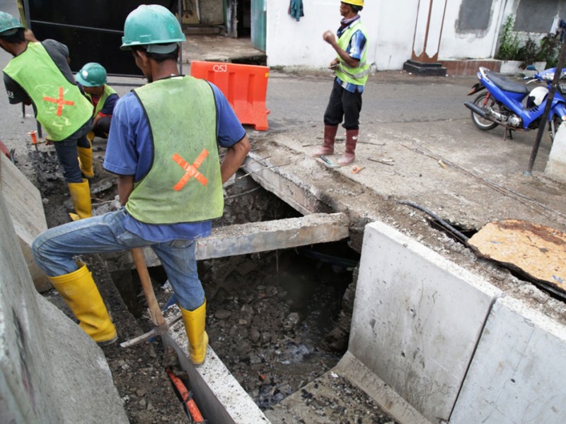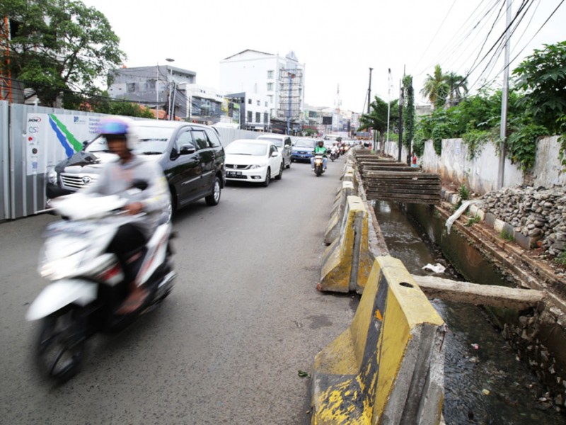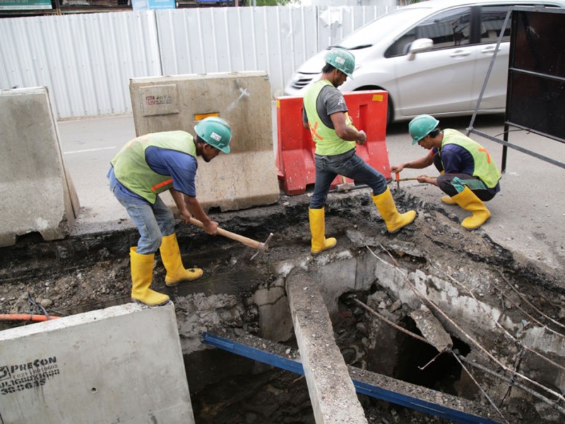 Saluran air di Jalan Raya Fatmawati, Jakarta Selatan, diperbaiki. Perbaikan saluran dilakukan sebagai upaya mencegah terjadinya genangan di ruas jalan yang juga bisa memicu terjadinya kemacetan.(Foto: Yopie/beritajakarta.com)
