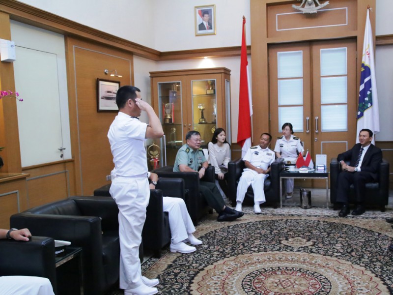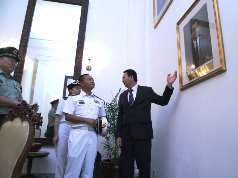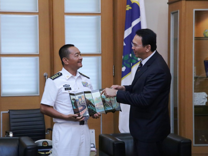 Gubernur DKI Jakarta, Basuki Tjahaja Purnama menerima Kunjungan Wakil Panglima Armada Laut Republik Rakyat Tiongkok Admiral Wang Qiandaoh di Balai Kota DKI Jakarta,Selasa (26/1/2016). Kunjungan ini dalam rangka mempererat hubungan bilateral Indonesia – RRTdalam bidang pertahanan maritim.(Foto: Yopie/beritajakarta.com)
