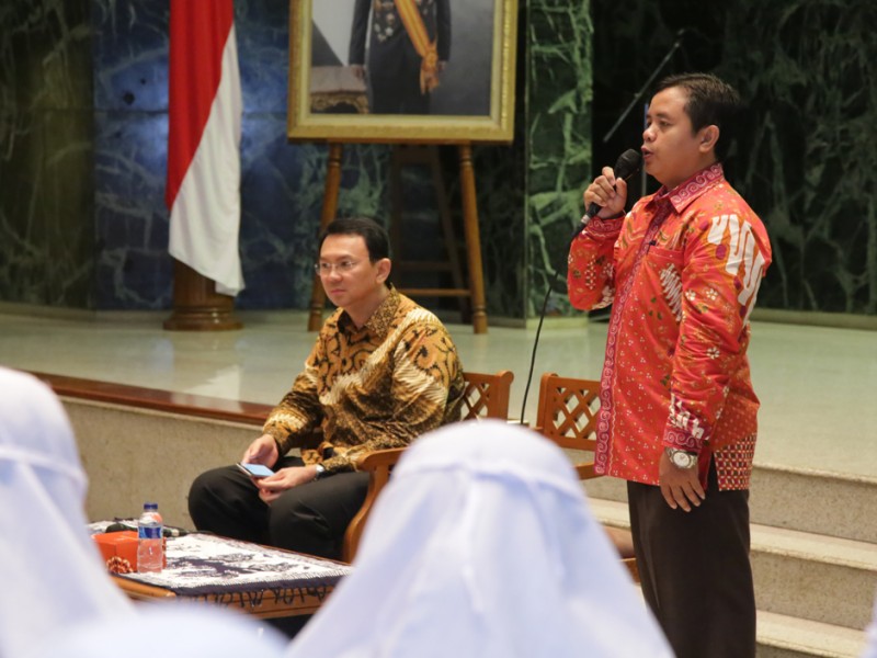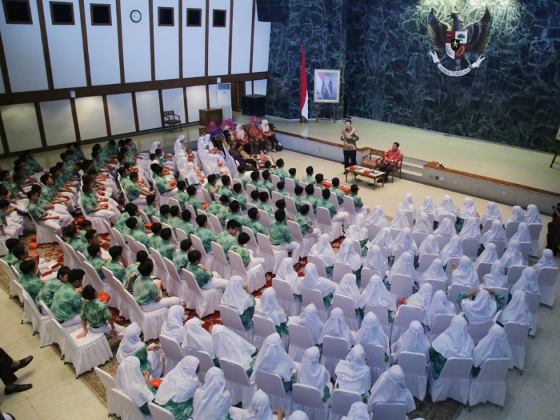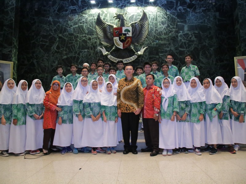 Siswa Kelas VII SMP Islam Al-Azhar Rawamangun, Jakarta Timur mendatangi Balai Kota DKI di jalan Medan, Merdeka Selatan, Gambir Jakarta Pusat, Rabu (27/1/2016) . Kedatangan mereka disambut langsung Gubernur DKI Jakarta, Basuki Tjahaja Purnama. (Foto: Yopie/beritajakarta.com)