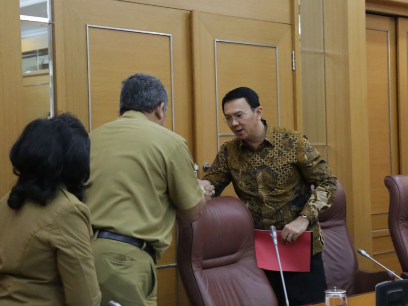 Gubernur DKI Jakarta, Basuki Tjahaja Purnama menggelar rapat dengan sejumlah perusahaan kontraktor yang akan menangani pembangunan Rusun Pulogebang - Jakarta Timur di Balai Kota DKI Jakarta, Rabu (27/1/2016). (Foto: Yopie/beritajakarta.com)
