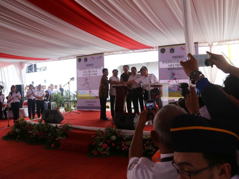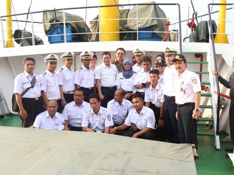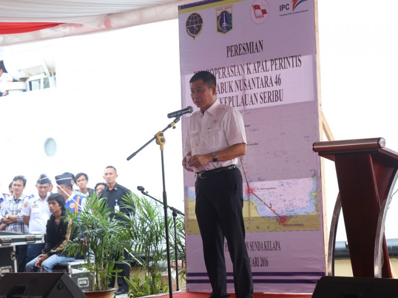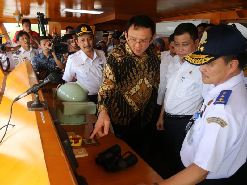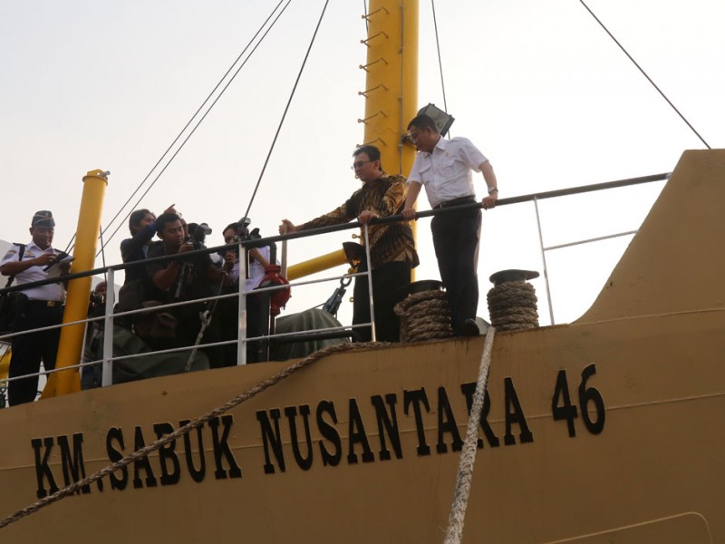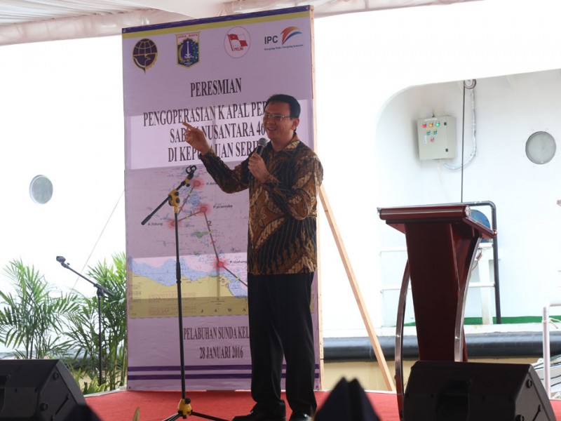 Gubernur DKI Jakarta, Basuki Tjahaja Purnama menghadiri peresmian pengoperasian Kapal Perintis Sabuk Nusantara 46 di Dermaga Kade Baru Timur, Pelabuhan Sunda Kelapa, Jakarta Utara, Kamis (28/01/2016). Basuki menyambut baik pengoprasian kapal tersebut dan berharap dapat meningkatkan perekonomian warga yang tinggal di Kepulauan Seribu.(Foto: Reza/beritajakarta.com)
