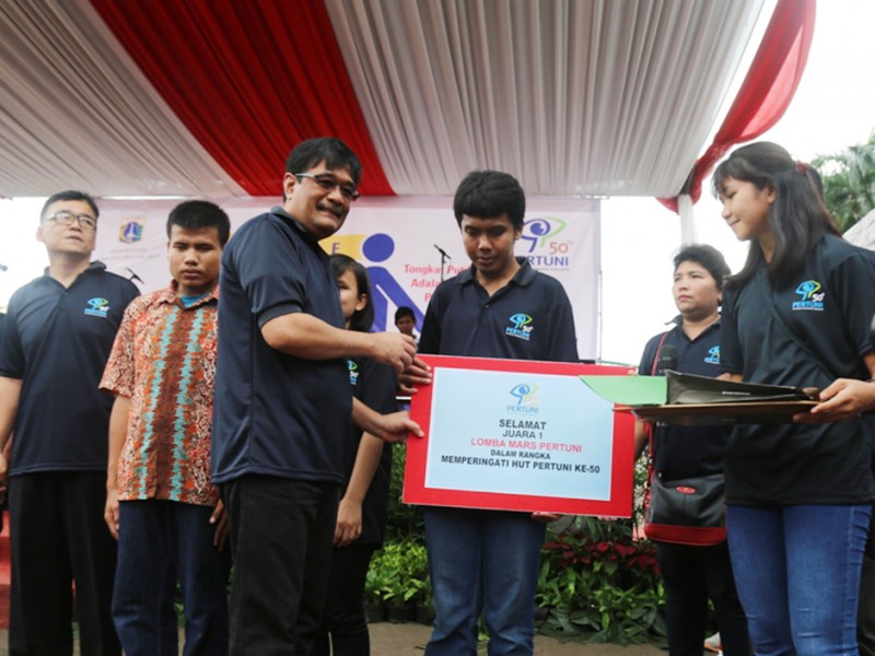 Wakil Gubernur DKI Jakarta, Djarot Saiful Hidayat menghadiri perayaan HUT ke-50 Persatuan Tuna Netra Indonesia (Pertuni) di kawasan Silang Monas Barat Daya, Gambir, Jakarta Pusat, Minggu (31/1/2016). Dalam sambutannya Djarot mengatakan, Pemprov DKI Jakarta akan lebih mandate warga tuna netra untuk memberikan jaminan mereka memperoleh pendidikan yang laka. (Foto: Reza/beritajakarta.com)