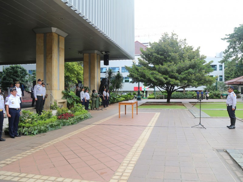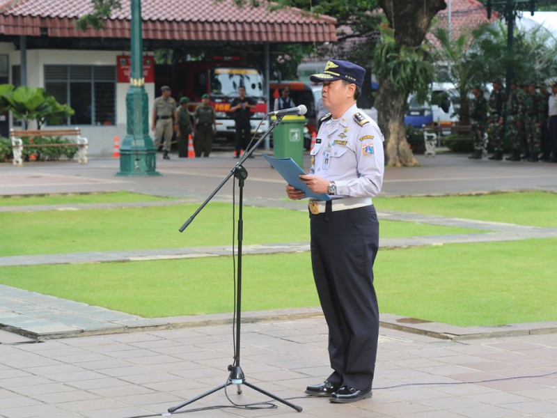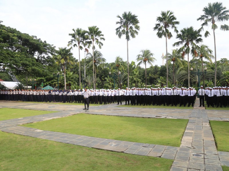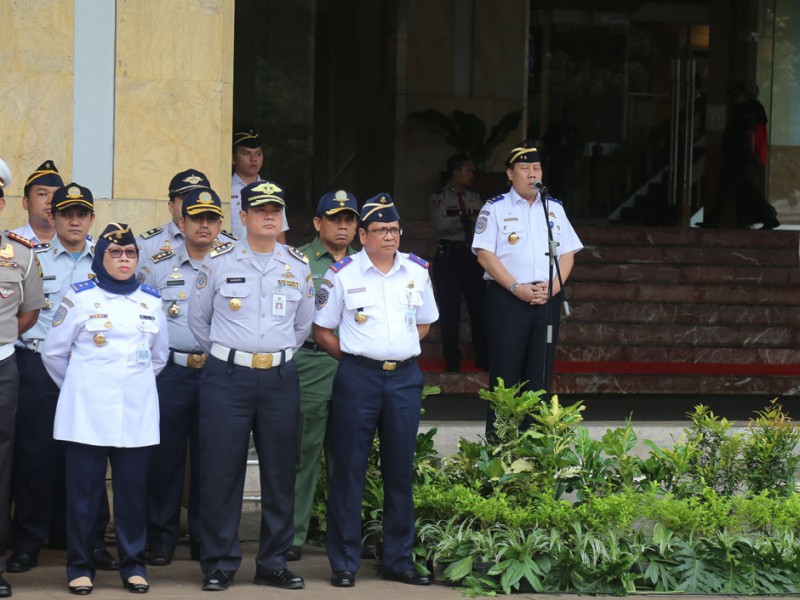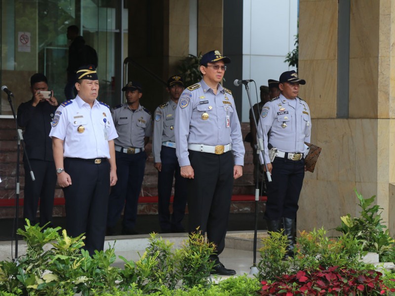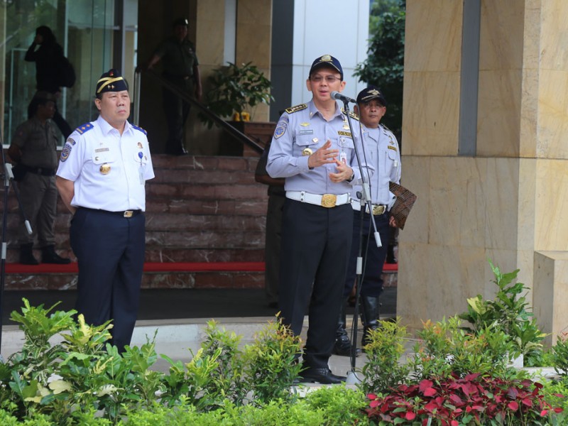 Pemerintah Provinsi DKI Jakarta menerima 943 orang Pegawai Kontrak Waktu Tertentu (PKWT) di Balai Kota DKI Jakarta, Senin (1/2/2016). Serah terima dilkukan oleh Sekretaris Jendral Kementerian Perhubungan Republik Indonesia, Sugihardjo, kepada Kepala Dinas Perhubungan dan transportasi DKI Jakarta Andri Yansyah yang disaksikanoleh Gubernur DKI Jakarta Gubernur DKI Jakarta, Basuki Tjahaja Purnama serta Direktur Lalu Lintas Polda Metro Jaya, Kombes Pol Risyapudin Nursin dan sejumlah Satuan Kerja Perangkat Daerah (SKPD) (Foto: Reza/beritajakarta.com)