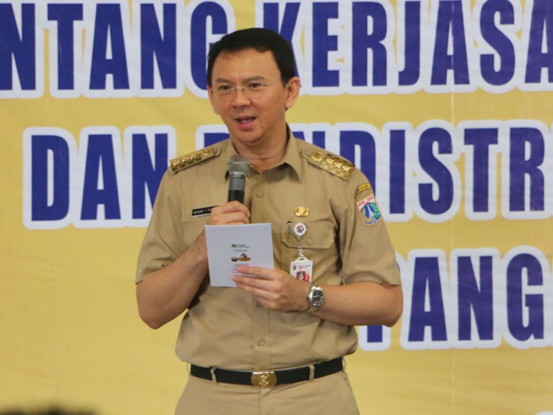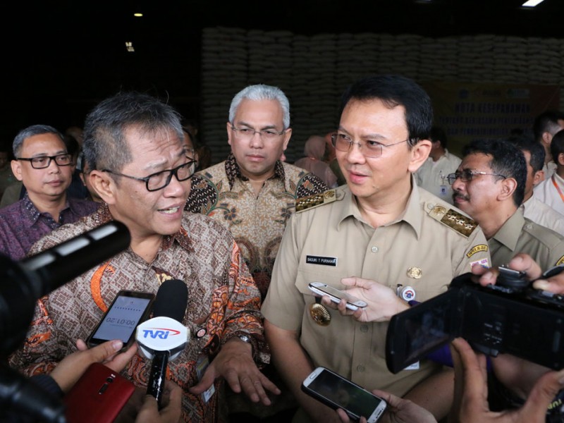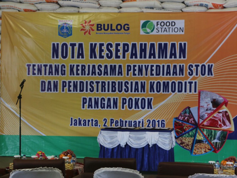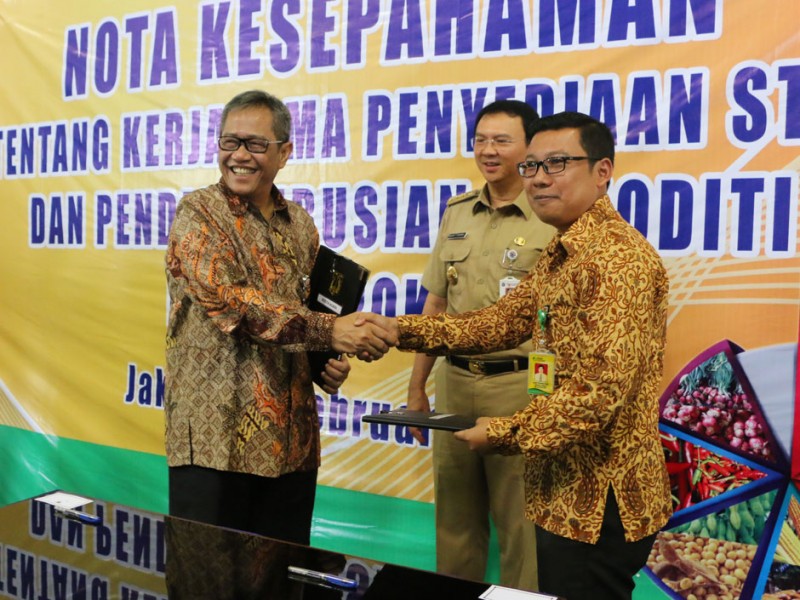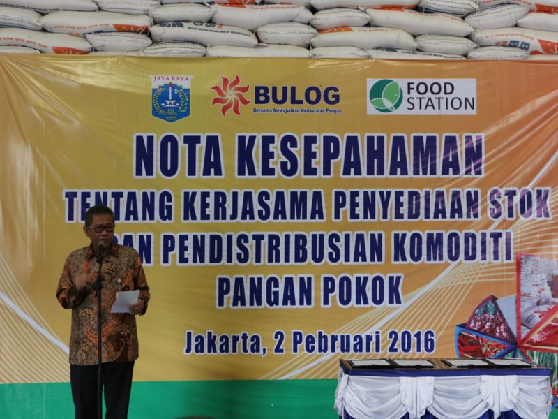 Gubernur DKI Jakarta, Basuki Tjahaja Purnama, menyaksikan penandatanganan MoU antara PT. Food Station Tjipinang Jaya dengan Perum Bulog di Gudang Bulog Divisi Regional (Divre) DKI Jakarta dan Banten Jalan Perintis Kemerdekaan, Kelapa Gading, Jakarta Utara. Selasa (2/2/2016) MoU ini terkait stabilitas harga beras di Jakarta.(Foto: Yudi/ Humas|Yopie/beritajakarta.com)