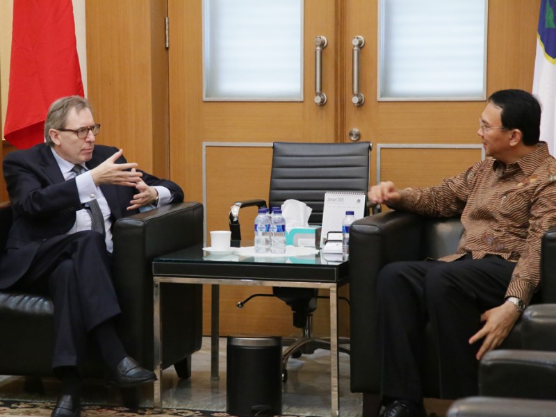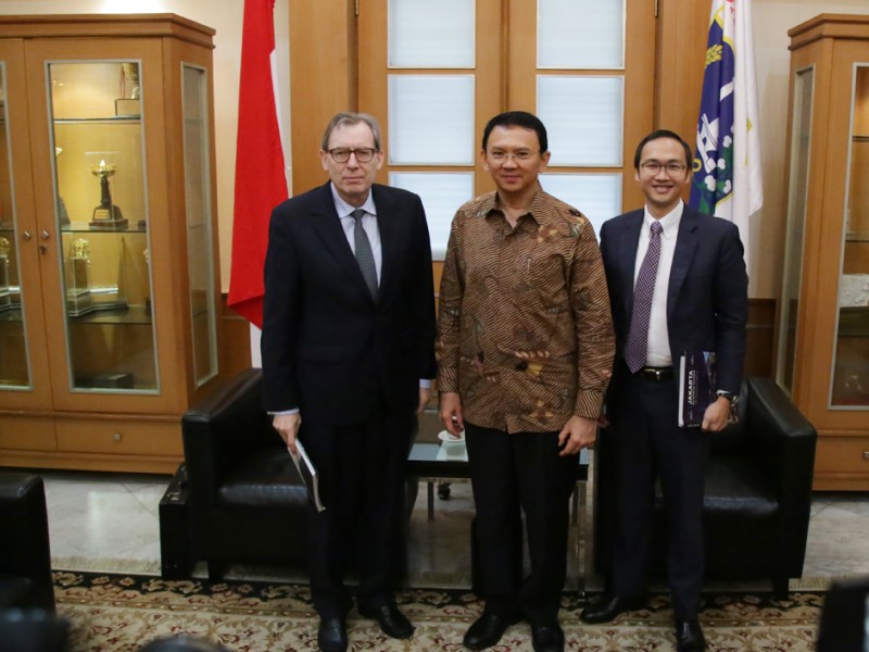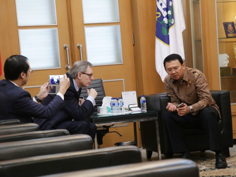 Gubernur DKI Jakarta, Basuki Tjahaja Purnama membahas proposal kerjasama tata kelola pemerintahan bersama Global Chairman The Boston Consulting Group di Balai Kota DKI Jakarta, Kamis (4/2/2016). Hadir dalam pembahsan ini CEO The Boston Consulting Group, Hans-Paul Bürkner, dan Kepala Biro Tata Pemerintahan Provinsi DKI Jakarta, Bayu Meghantara. (Foto: Yopie/beritajakarta.com)