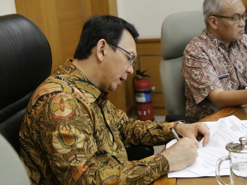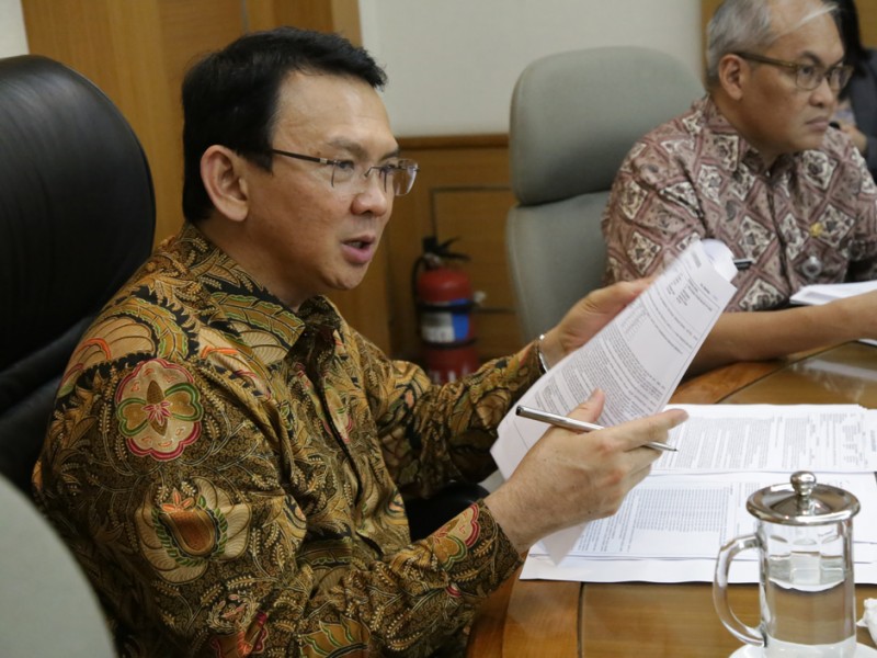 Gubernur DKI Jakarta, Basuki Tjahaja Purnama menggelar rapat bersama Badan Koordinasi Penataan Ruang Daerah (BKPRD) Provinsi DKI Jakarta, di Balai Kota DKI Jakarta, Jumat (5/2/2016). Rapat ini membahas Program Pembangunan di Pemprov DKI yang tidak menyalahi aturan tata ruang dan memenuhi kaedah kelestarian lingkungan. Rapat ini dihadiri oleh Deputi Gubernur DKI Jakarta Bidang Tata Ruang dan Lingkungan Hidup, Oswar Muadzin Mungkasa, Tim Gubernur Untuk Percepatan Pembangunan (TGUPP), Muhammad Yusuf, Kepala BPTSP Provinsi DKI Jakarta, Edy Junaedi, dan KepalaBPLHD Provinsi DKI Jakarta, Gamal Sinurat. (Foto: Yopie/beritajakarta.com)