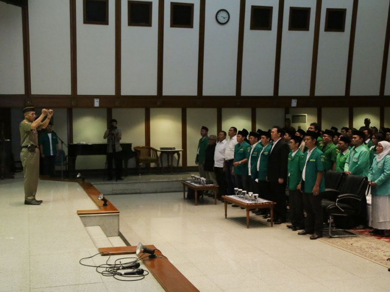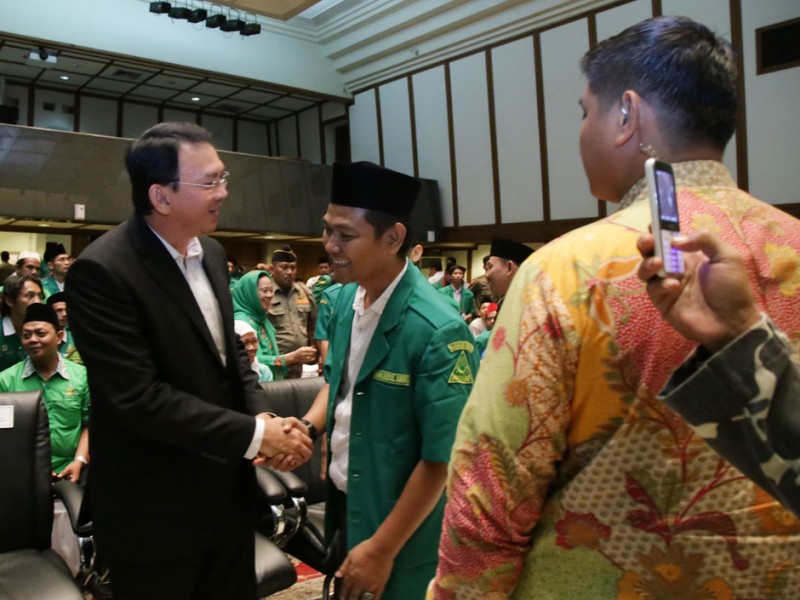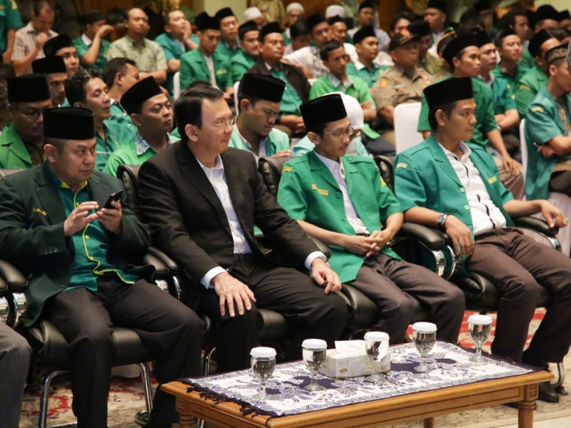 Gubernur DKI Jakarta, Basuki Tjahaja Purnama membuka Konferensi Wilayah Gerakan Pemuda Ansor XVII Provinsi DKI Jakarta, di Balai Kota DKI Jakarta, Jumat (5/2/2016). Hadir dalam acara ini Ketua PC GP Ansor Jakarta Pusat, Ahmad Fadli dan Anggota GPAnsor lainya. (Foto: Reza/beritajakarta.com)