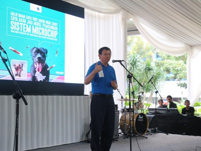Gubernur DKI Jakarta, Basuki Tjahaja Purnama mengahadiri launching Edukasi Massal Jakarta Animal Aid Network (JAAN) di Balai Kota DKI Jakarta, Minggu (07/02/2016). Dalam sambutannya Basuki mengatakan binatang peliharaan harus memakai Microchip karena maraknya pencurian binatang seperti kucing dan anjing, microchip sendiri nantinya akan didistribusikan ke klinik-klinik dokter hewan dan pemilik hewan hanya dikenakan biaya berkisar antara Rp 100.000 hingga Rp 150.000. (Foto: Reza/beritajakarta.com)
