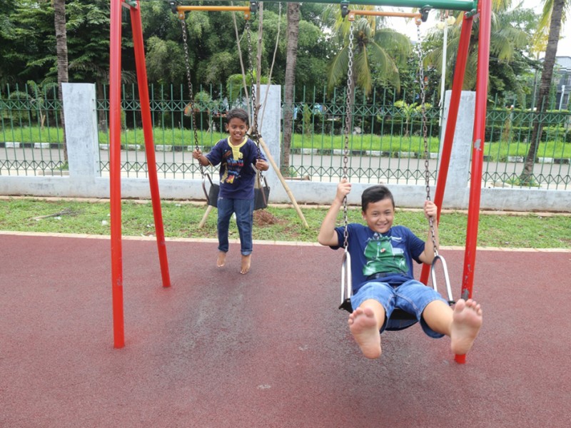 Sejumlah warga yang terdiri dari anak-anak mulai mengunjungi dan memanfaakan fasilitas Taman Kelapa di Jalan Pondok Kelapa Raya (Palem Indah Raya) Kelurahan Pondok Kelapa, Kecamatan Duren Sawit, Jakarta Timur Selasa (9/2/2016). Taman Kelapa telah diresmikan oleh Gubernur DKI Jakarta Basuki Tjahaja Purnam bersam 9 taman lainya di Taman Jagakarsa, Jakarta Selatan Selasa Pagi. (Foto: Reza/beritajakarta.com)