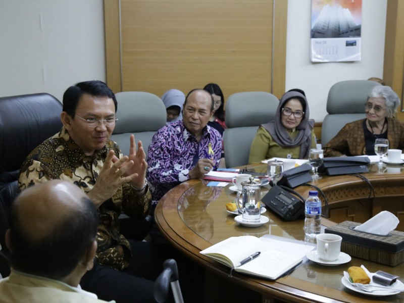 Gubernur DKI Jakarta, Basuki Tjahaja Purnama menerima Paguyuban Wartawan Senior Indonesia di Balai Kota DKI Jakarta, Selasa (9/2/2016). Kunjungan Paguyuban Wartawan Senior ini dalam rangka silaturahmi dan Peringatan hari Pers Nasional.(Foto: Yopie/beritajakarta.com)