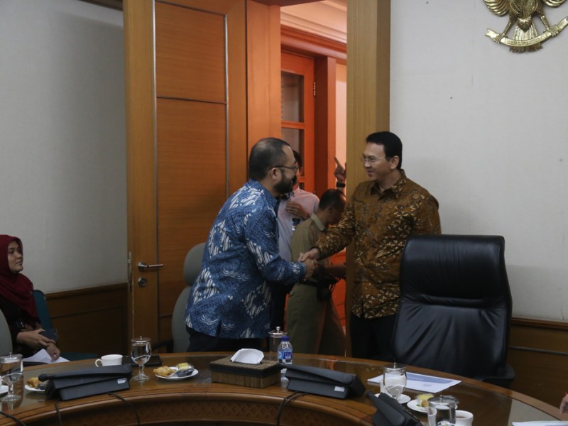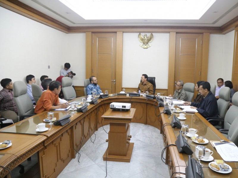 Gubernur DKI Jakarta, Basuki Tjahaja Purnama menerima PT. BIT Teknologi Nusantara di Balai Kota DKI Jakarta, Rabu (10/02/2016). Dalam opertemuan ini Pemerintah DKI Jakarta menagih kewajiban pemasanagan cctv untuk Pemerintah Provinsi DKI Jakarta.(Foto: Yopie/beritajakarta.com)
