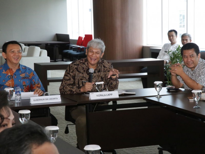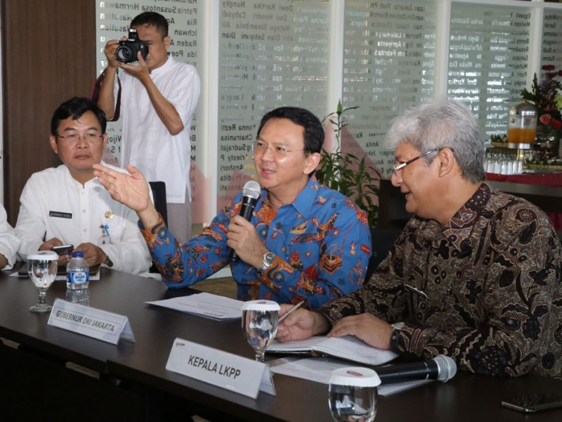 Gubernur DKI Jakarta Basuki Tjahaja Purnama mengunjungi Lembaga Kebijakan Pengadaan Barang/Jasa Pemerintah (LKPP) di Jalan Epicentrum Tengah, Kuningan, Setiabudi Jakarta Selatan, Kamis (11/2/2016). Kunjungan ini terkait sosilisasi Sistem Rencana umum Pengadaan (SIRuP).(Foto: Yopie/beritajakarta.com)