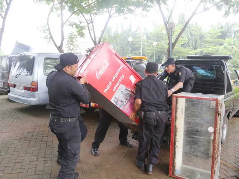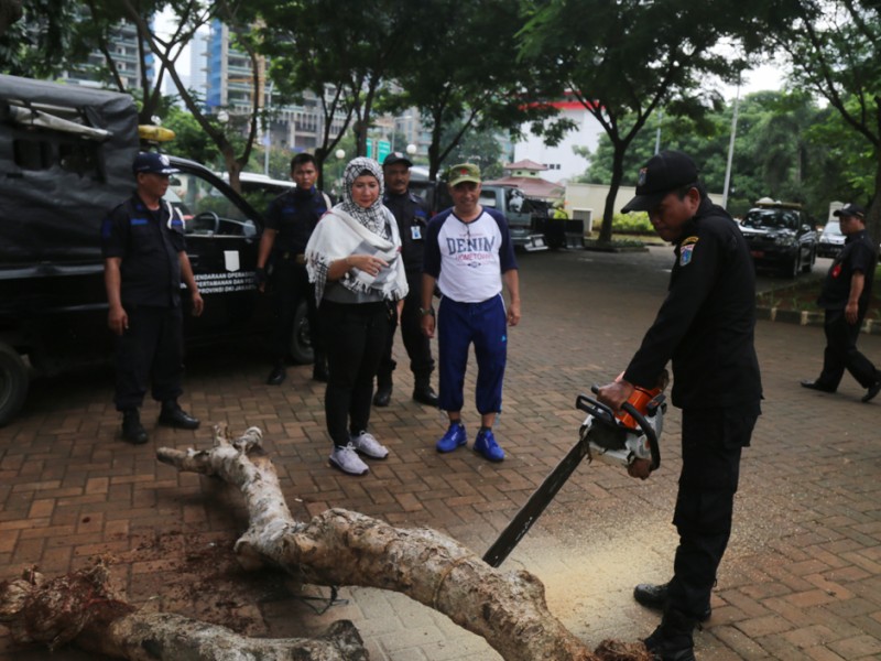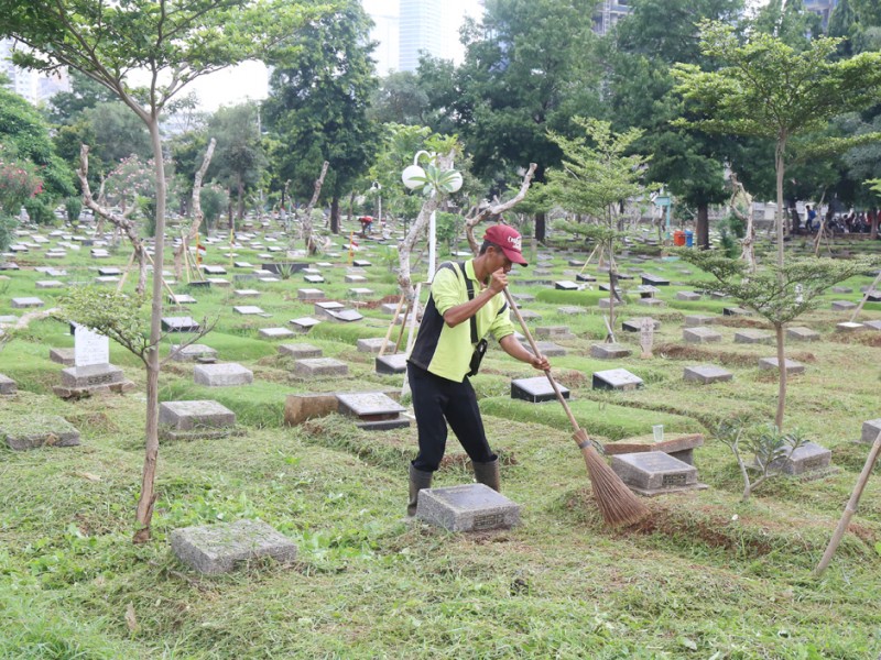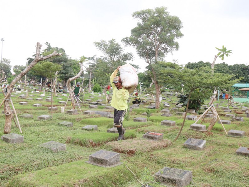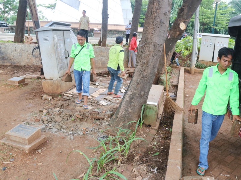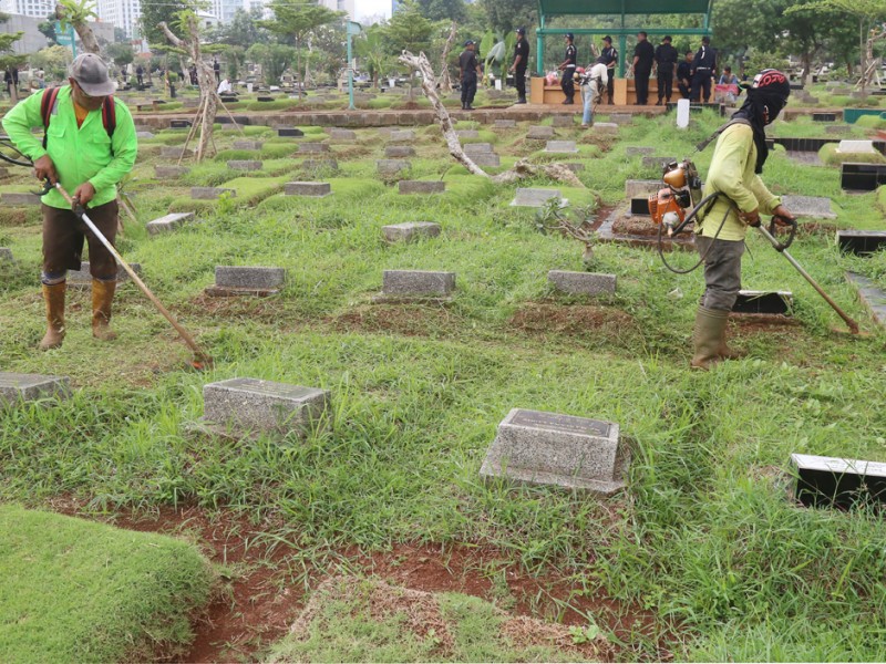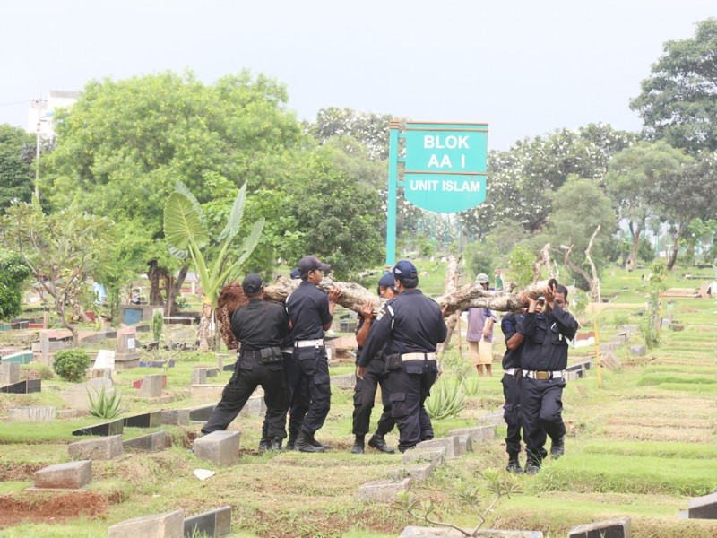 Dinas Pertamanan dan Pemakaman DKI Jakarta melakukan penataan di Taman Pemakaman Umum (TPU) Karet Bivak, Kecamatan Tanah Abang, Jakarta Pusat, Jumat (12/02/2016). Penataan dilakukan oleh Ratusan personel Polisi Khusus (Polsus) Pertamanan dengan membongkar sejumlah bangunan liar yang dan menoping sejumlah pohon. (Foto: Reza/beritajakarta.com)