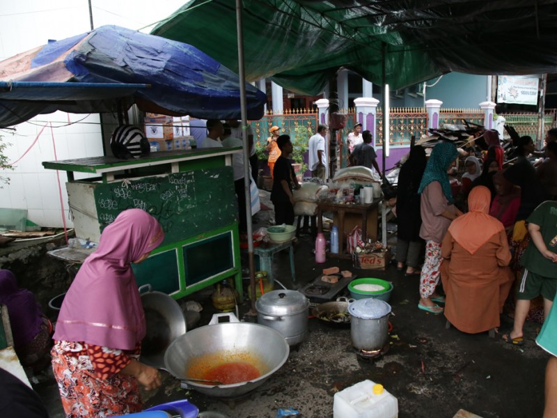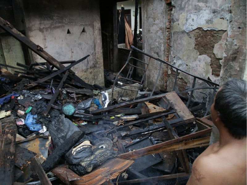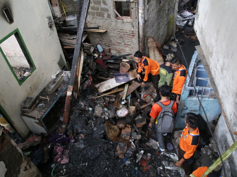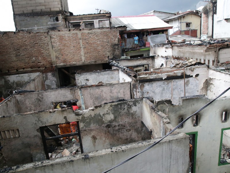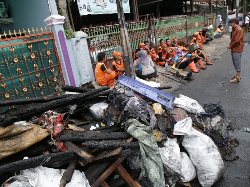 Sebanyak 150 Petugas Prasarana dan Sarana Umum ( PPSU ) membersihkan puing-puing sisa kebakaran di Jalan Petamburan III, Rw 04, Kelurahan Petamburan, Kecamatan Tanah Abang, Jakarta Pusat. Jumat (12/02 2016). Diketahui Kamis Malam lalu, kobaran api menghanguskan 24 rumah warga di lokasi tersebut. Akibat peristiwa ini 200 jiwa mengungsi ke Masjid Jami Al Ishlah.(Foto: Yopie/beritajakarta.com)
